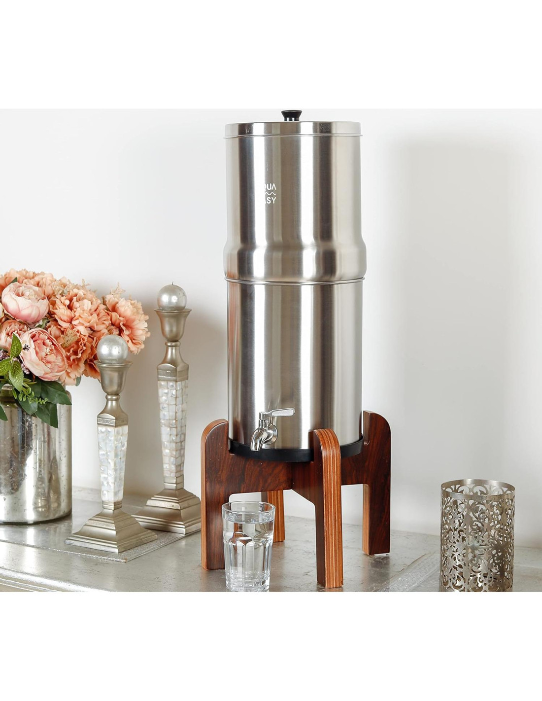 - PAQUETE COMPLETO CON SOPORTE Y ACCESORIOS - Viene con todo lo que necesitas: cámaras de acero inoxidable superior e inferior, dos filtros de carbón, grifo de acero inoxidable, soporte de madera, tapones de bloqueo, tapa con perilla y un manual de usuario fácil de seguir. No necesitas compras o herramientas adicionales, solo ensambla y disfruta de agua limpia en minutos.