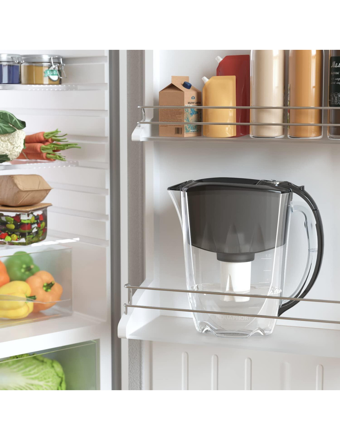 La Jarra AQUAPHOR Ideal de 7 TAZAS es ligera y compacta, diseñada para caber dentro de la puerta de su refrigerador. La jarra viene suministrada con 1 x Filtro de Agua Aquaphor B15 que dura hasta asombrosas 45 Galones (170.34 litros). Con tapa deslizante para un fácil llenado. Este filtro de agua completo es apto para lavavajillas (excluyendo la tapa). Todas las partes son libres de BPA.