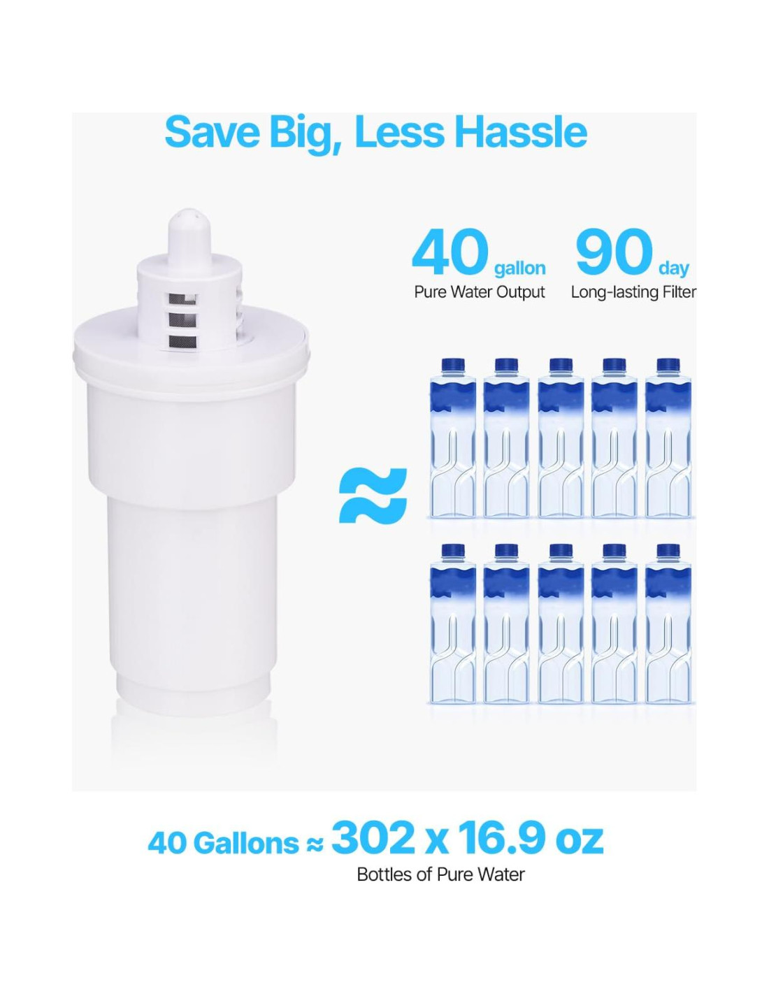 - Solución Económica: Nuestra jarra de agua filtrada proporciona un filtro que maneja 40 galones (151 litros) o 302 botellas de 500 ml, proporcionando 3 meses de agua fresca sin reemplazos frecuentes