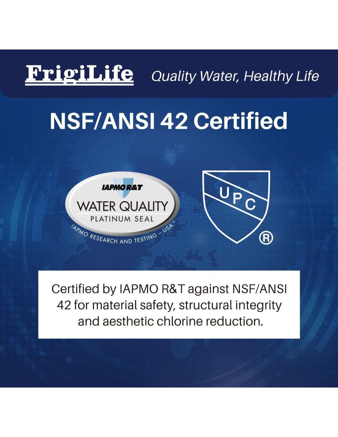 - Certificación Autorizada - El filtro de agua RV en línea FrigiLife está certificado por NSF/ANSI 42. Reduce en gran medida el 99% de Cloro, Mal Sabor y Olor. La clasificación de micrones es de 20 micrones.
