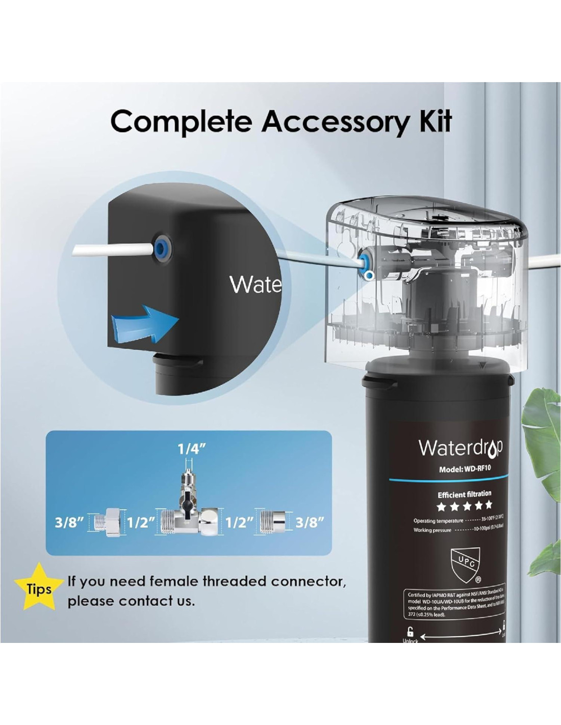 - Tasa de flujo rápida y múltiples usos: La tasa de flujo total probada de este sistema de filtro de agua bajo fregadero es de 0.75 gpm (2,84 lpm) a 60 psi. El suministro de agua rápido y estable proporciona agua pura y fresca que sabe a agua de manantial. Desarrollado para uso doméstico y comercial, el sistema de filtro de agua bajo fregadero Waterdrop se puede instalar en su cocina, casa rodante o oficina para satisfacer sus necesidades diarias de agua. Con su diseño exquisito y tamaño pequeño, es la mejor opción para un apartamento alquilado.