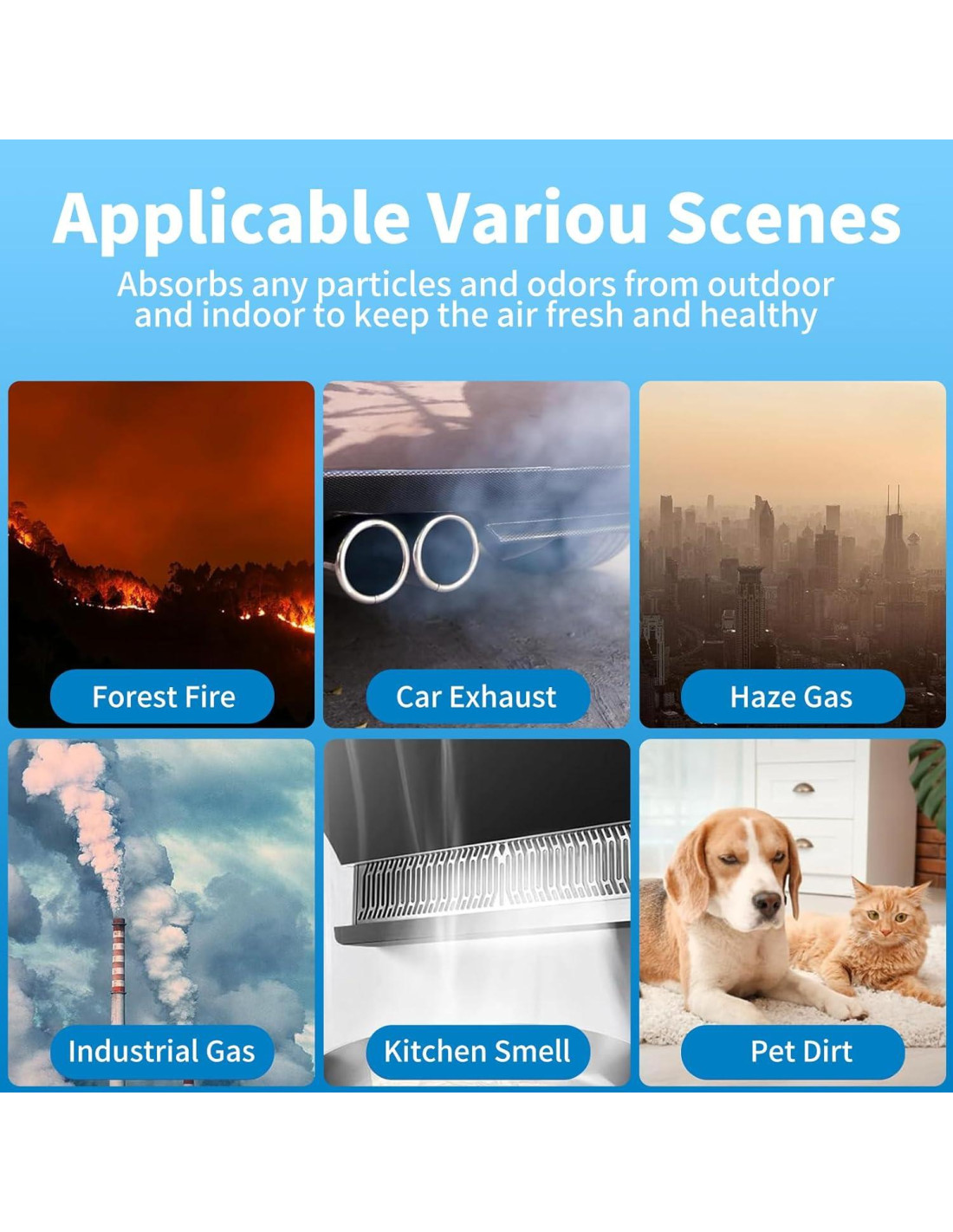 - Filtración de Alta Eficiencia - El filtro de carbón elimina las partículas grandes, como cabello, pelusa, humo de cigarrillo, pelo de mascotas, caspa, olores, etc., liberando aire puro y limpio en la habitación