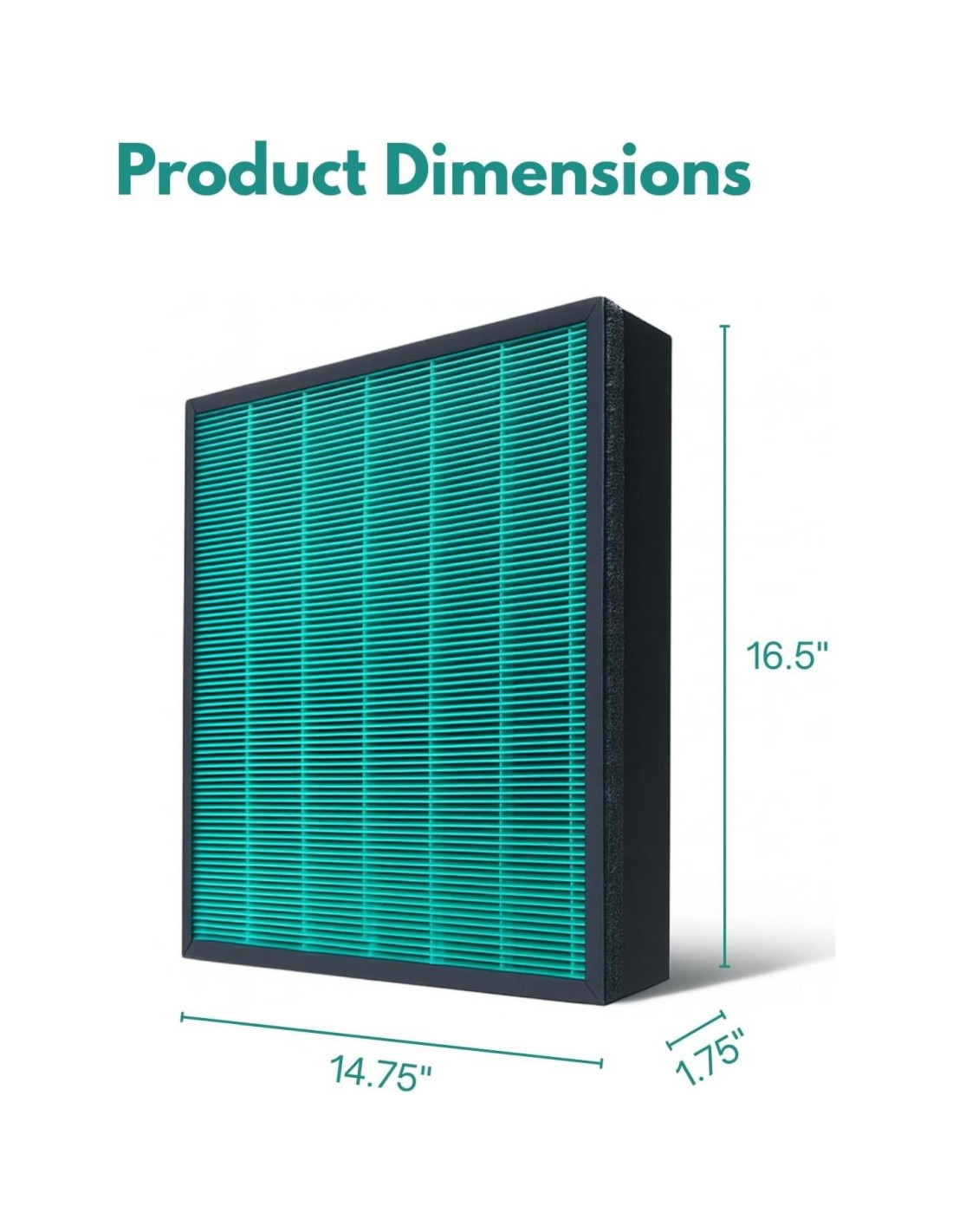 - 1 filtro incluido. Dimensiones 41.91 cm x 37.47 cm x 4.45 cm. Se sugiere reemplazar el filtro cada 6 meses para optimizar el rendimiento