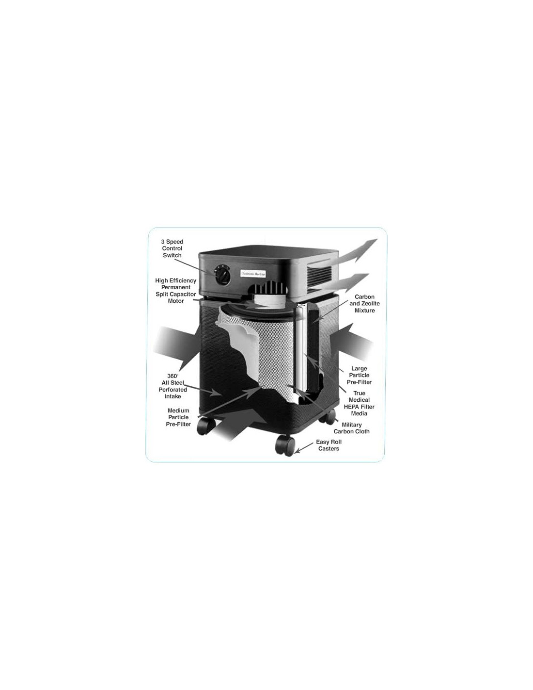Ideal para generar uno de los aires más frescos y limpios, este purificador de aire Máquina de dormitorio tiene un filtro de 5 etapas compuesto por un HEPA de grado médico, tela de carbono HEGA y una mezcla de carbono-antracita y zeolita. Perfecto para espacios de hasta 1393.55 pies cuadrados (129.96 metros cuadrados), el sistema de entrada de 360 grados de la Máquina de dormitorio absorbe aire por todos los lados de la unidad, asegurando que purifique completamente su aire. Respaldado por la Fundación Nacional del Sueño, el sistema de filtración de aire de la Máquina de dormitorio Austin Air está diseñado para cumplir con las especificaciones de la Escuela de Medicina de la Universidad Johns Hopkins para capturar gases y partículas nano. Operar la Máquina de dormitorio es tan fácil como usar el botón de control para seleccionar entre tres velocidades. Y con un filtro diseñado para durar cinco años, la Máquina de dormitorio es una unidad de bajo mantenimiento. Etapa 1: Filtro pre-filtro de partículas grandes elimina partículas visibles, como polvo, cabello y caspa de mascotas. Etapa 2: Filtro pre-filtro de partículas medianas elimina moho, polen y otros alérgenos. Etapa 3: Quince libras (6.8 kilogramos) de carbono antracita y zeolita eliminan olores, productos químicos y gases. Etapa 4: Sesenta pies cuadrados (5.57 metros cuadrados) de HEPA de grado médico eliminan microorganismos, como virus y bacterias, y cualquier otra partícula mayor de 0.3 micrones. Etapa 5: Tela de absorción de gas de alta eficiencia elimina aún más partículas sub-micrónicas, gases y productos químicos. Material: Metal Opciones de color: Negro, beige, azul oscuro, blanco Tipo de filtración: Filtro HEPA Características del producto: Tamaño de habitación recomendado: Grande, 401 o más Dimensiones: 35.56 cm x 35.56 cm x 58.42 cm