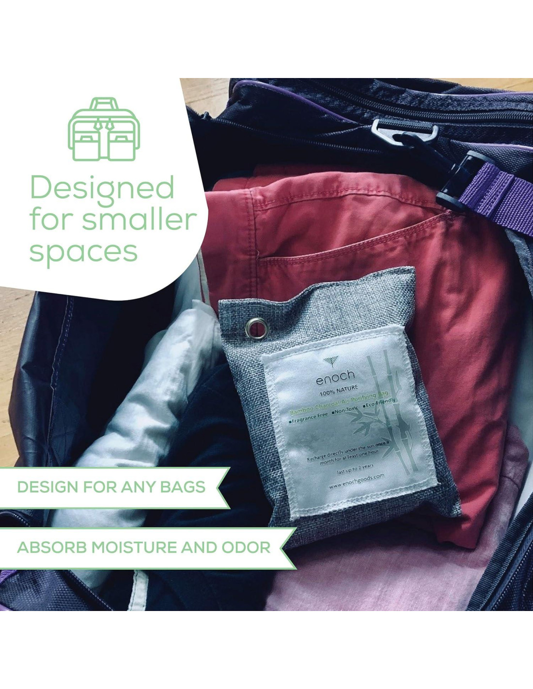 - <b>COMIENZA TU DÍA CON AIRE FRESCO</b>: Consigue una bolsa purificadora de aire de carbón Enoch y refresca tu hogar, auto y zapatos. La bolsa purificadora de aire de carbón de bambú es la forma más efectiva y natural de desodorizar y absorber olores y humedad del aire. Las bolsas de carbón activado actúan como una esponja para absorber y neutralizar el mal olor.
