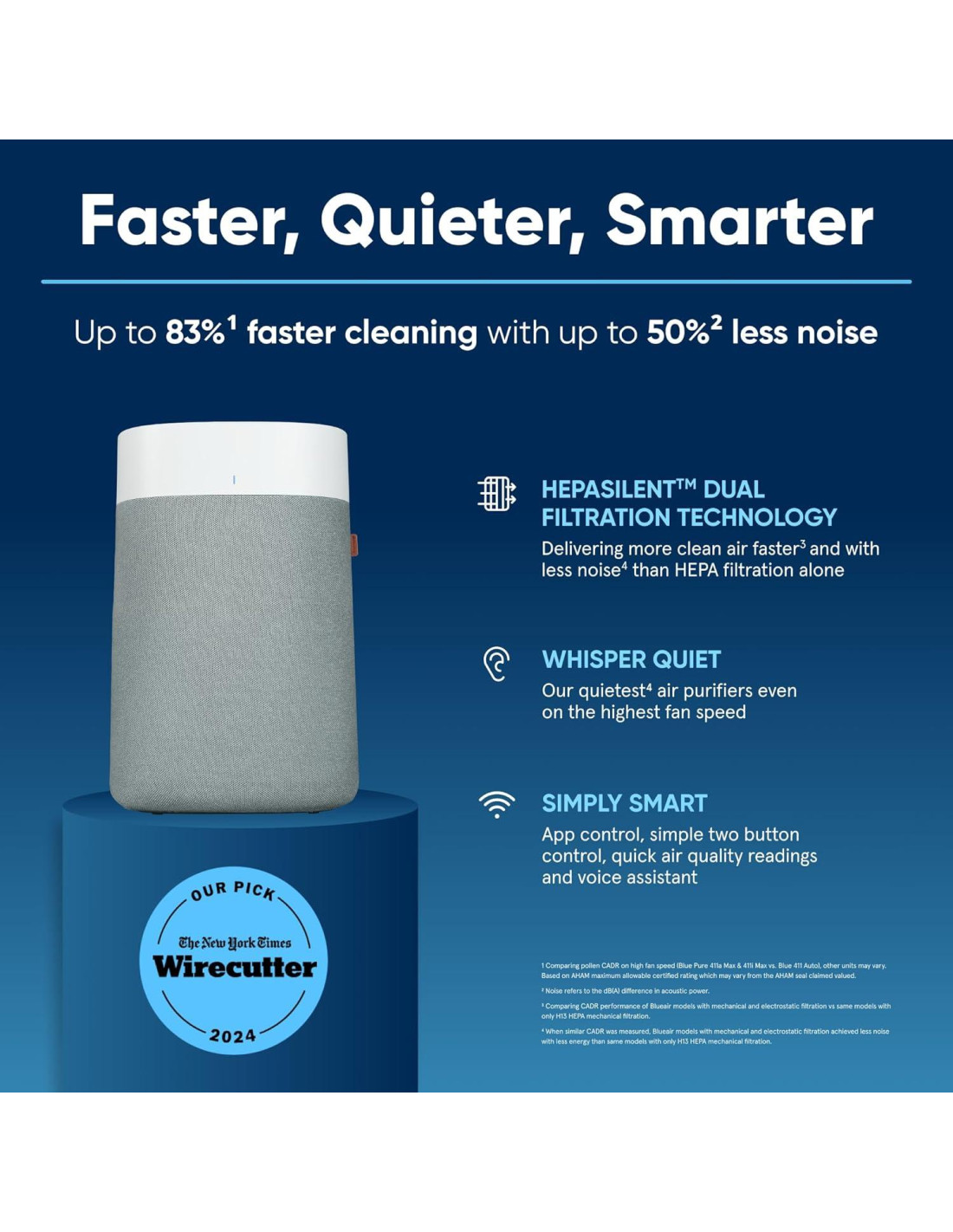 - LÍNEA DE PURIFICADORES DE AIRE DE MEJOR RENDIMIENTO DE BLUEAIR: La nueva serie Pure Max de la familia Blue con nuestro rendimiento HEPASilent propietario ahora aún mejor con hasta un 83% de limpieza más rápida y un 50% menos de ruido*