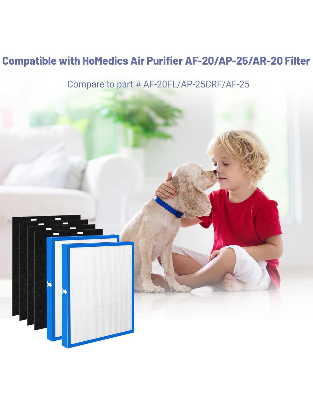 - Compatibilidad: Nuestro reemplazo de Filtro HEPA Verdadero AF-20FL es compatible con el Purificador de Aire HoMedics AF-20 AP-25 AR-20, Número de Parte AF-20FL AP-25CRF AF-25.