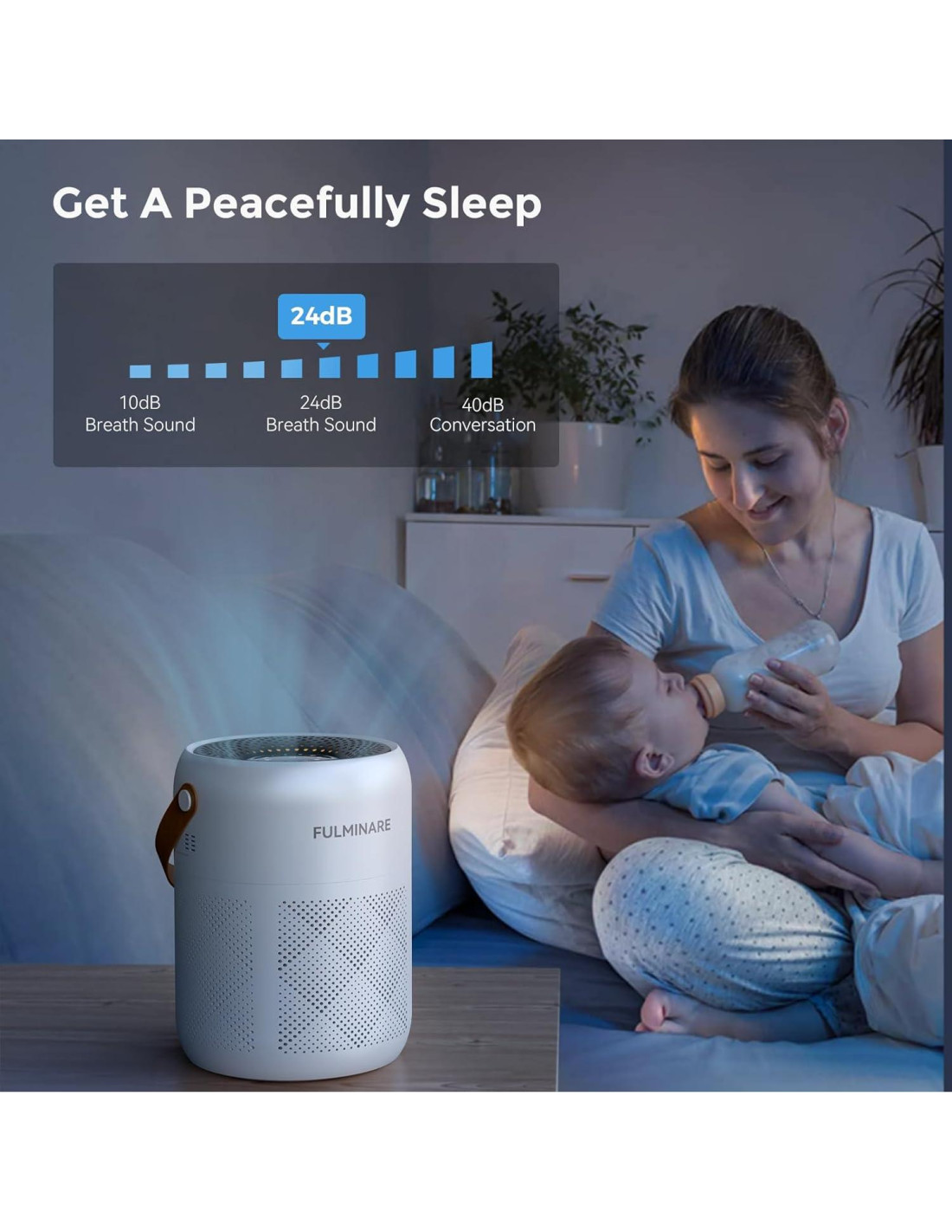 - Sueño Reparador: Diga adiós a las noches inquietas con nuestra función de modo de sueño. Diseñado para operar en silencio (24dB) mientras mantiene una calidad de aire óptima, el purificador de aire silencioso crea el ambiente perfecto para dormir para usted y sus seres queridos. Disfrute de un sueño ininterrumpido y despierte sintiéndose rejuvenecido.