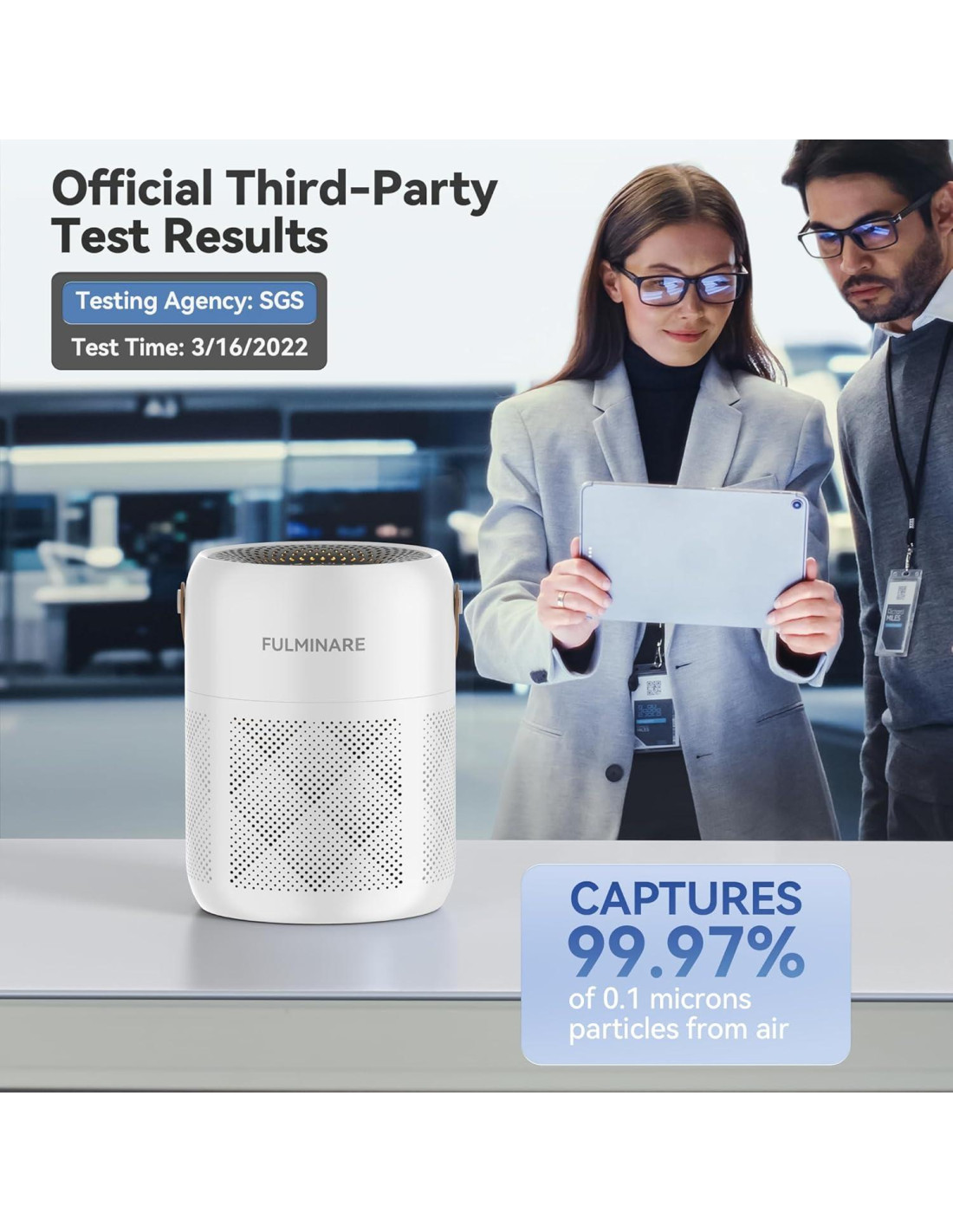 - Rendimiento de Filtración Poderoso: El purificador de aire premium para el hogar FULMINARE tiene entradas de aire de 360 grados que cubren 215 ft (20 m). Transforme su hogar en un santuario de aire limpio y fresco. Equipado con filtro H13 True HEPA, filtra efectivamente el 99.97% de partículas de 0.01 micrones como contaminantes, alérgenos y caspa de mascotas, asegurando que respire con facilidad y viva de manera más saludable.