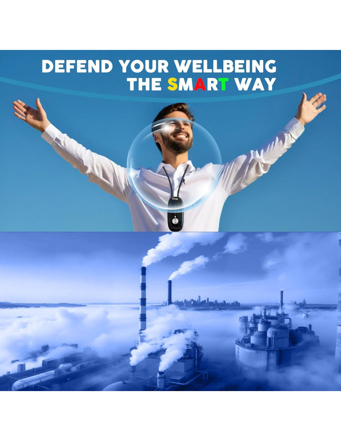 - Protege el espacio personal: Los iones negativos producidos por el purificador de aire wearable forman una cubierta protectora invisible que puede resistir eficazmente los contaminantes del aire como PM2.5, polen, polvo y smog. Crea un espacio privado saludable para ti.