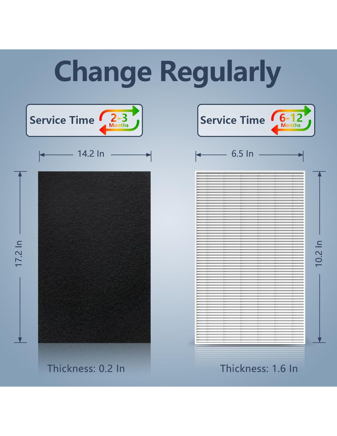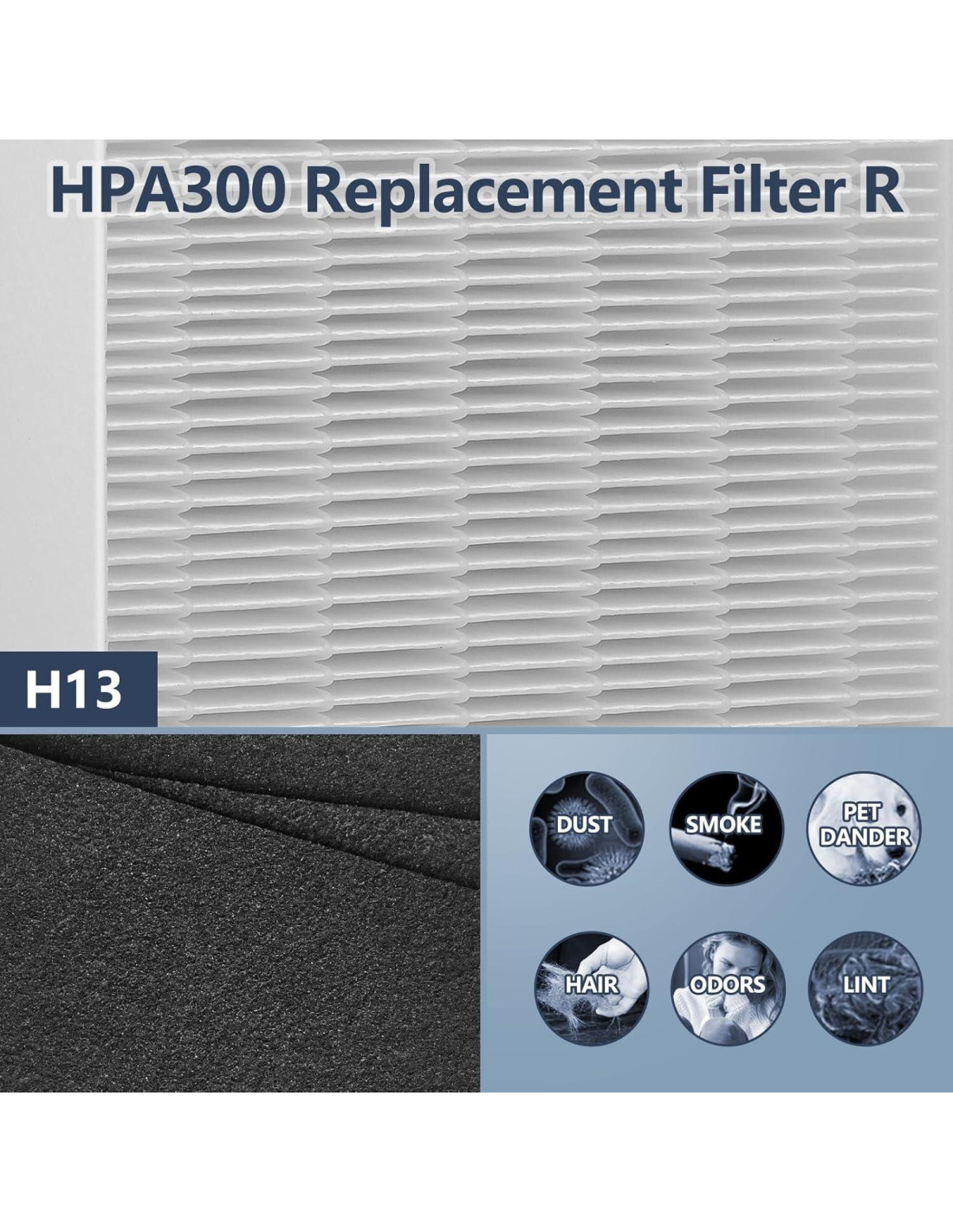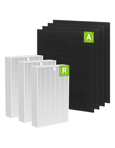 - Kit de Reemplazo de Filtro de Purificador de Aire - Incluye 3 Filtros de Reemplazo tipo HEPA R y 4 Filtros Pre-Cortados de Carbono A. El reemplazo regular del kit de filtro de purificador de aire HEPA ayuda al purificador de aire HPA300 a mantener eficientemente el 99.97% de filtración, resultando en aire más limpio y fresco.
