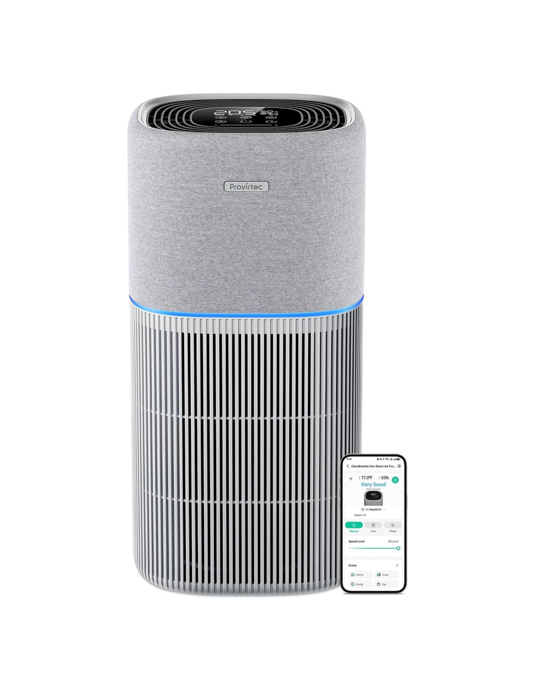 - Modo de Sueño Inteligente: Adecuado como un purificador de aire para habitación grande para uso en dormitorio, el modo de sueño automático se activa en baja luz y ajusta la velocidad del ventilador para una operación silenciosa de 24db. Ofrece 10 configuraciones de velocidad para comodidad nocturna