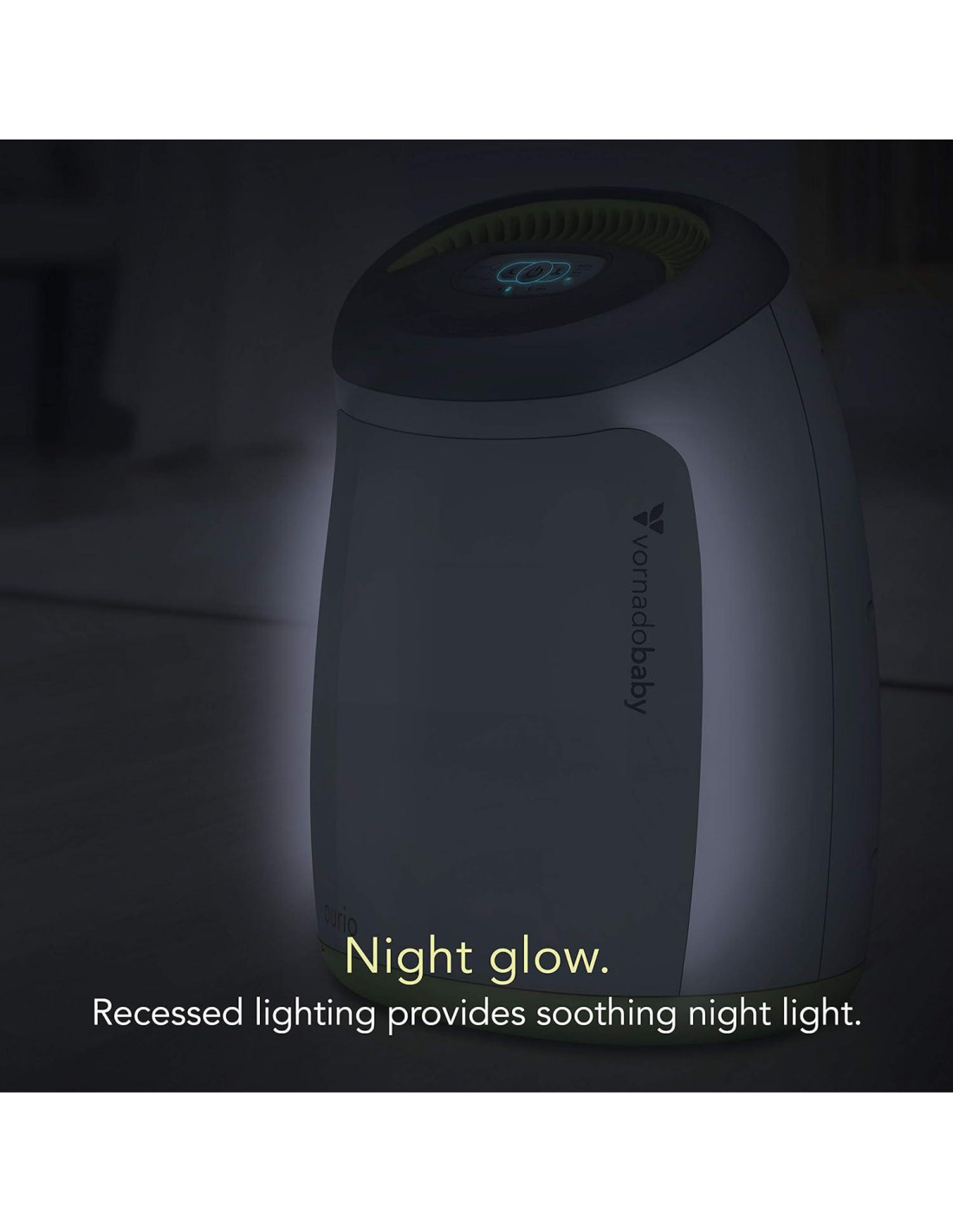 - A PRUEBA DE CURIOSIDAD - Purio para guarderías es amigable con los dedos, sin puntos de pellizco y con una base extra ancha y resistente a vuelcos. El almacenamiento de cables está convenientemente oculto en la base de Purio. Además, los controles y la cubierta del filtro son bloqueables, por lo que los padres pueden estar tranquilos sabiendo que la configuración está tal como la dejaron.