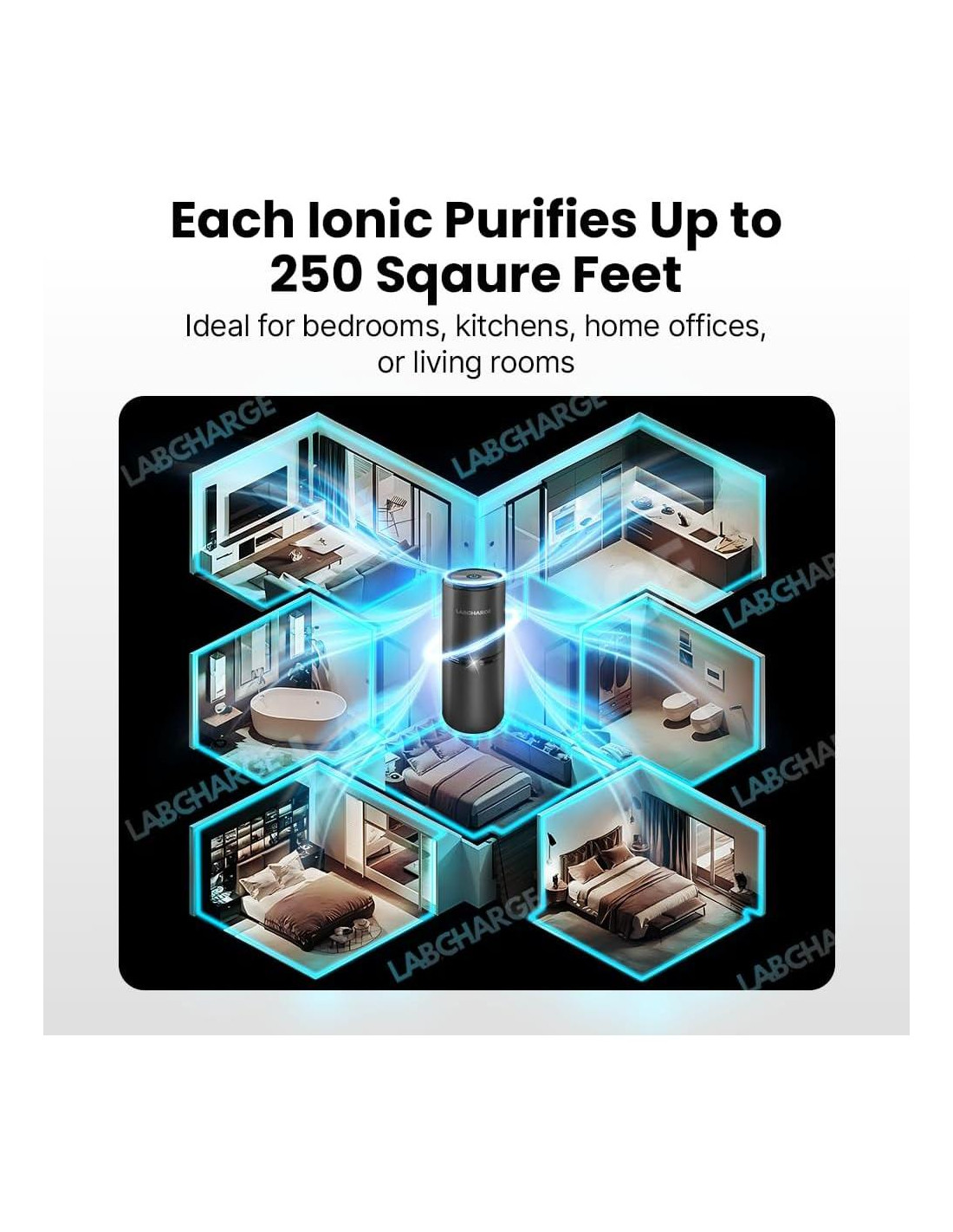 - Cobertura Potente de Hasta 23.2 m: Los contaminantes invisibles están en el aire que respiras todos los días, y la mayoría de los purificadores de aire simplemente no pueden mantenerse al día. Por eso construimos el purificador de aire iónico LabCharge. Usando tecnología de iones avanzada, refresca silenciosamente tu espacio sin filtros voluminosos ni costosas sustituciones de filtros. Compacto y versátil, es el purificador de aire perfecto para uso en dormitorio, oficina o habitación universitaria.