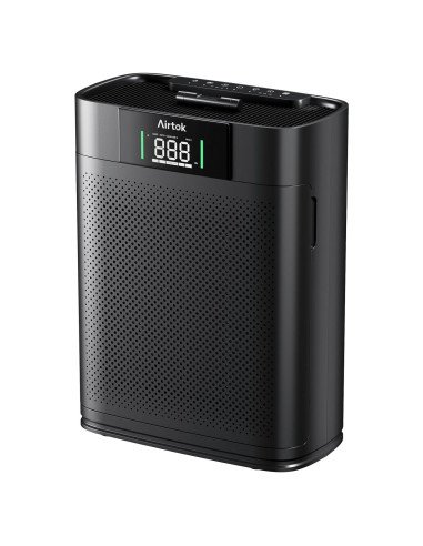 - AMPLIA COBERTURA: El purificador de aire es perfecto para espacios grandes interiores, especialmente grandes dormitorios. El purificador de aire tiene un potente sistema de filtración que puede eliminar partículas tan pequeñas como 0.3 micrones, incluyendo polvo y polen. Puede purificar el aire de un espacio de 1300 pies (120 m) una vez/hora (basado en Filtros Originales AIRTOK; no aplicable a otros filtros de reemplazo)