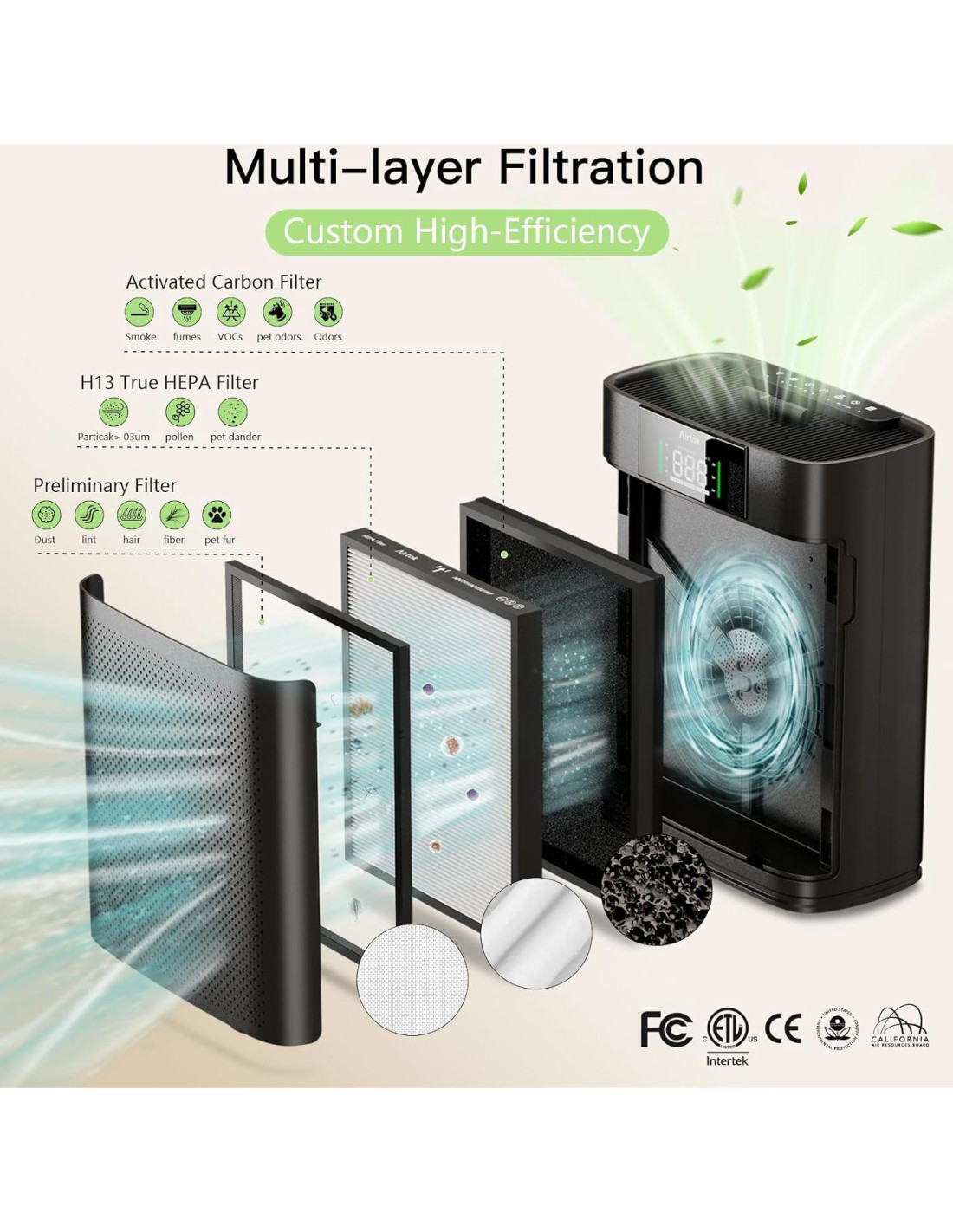 - CERTIFICACIÓN AUTORITARIA PARA LARGO USO Y SEGURIDAD: Certificado por CARB, ETL, EPA, DOE y FCC. Sin liberación de ozono, sin luz UV, seguro para ti y tu familia. Si tienes alguna pregunta, no dudes en decírnoslo