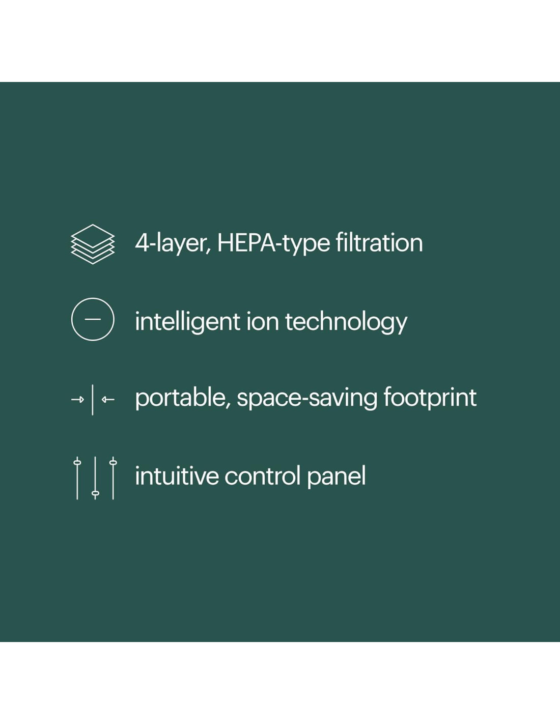 - ION INTELIGENTE: La función de ion inteligente bajo demanda emite iones cargados negativamente para reducir el polvo. Además, está certificado por CARB, por lo que puedes tener la tranquilidad de saber que no emitirá una cantidad dañina de ozono.