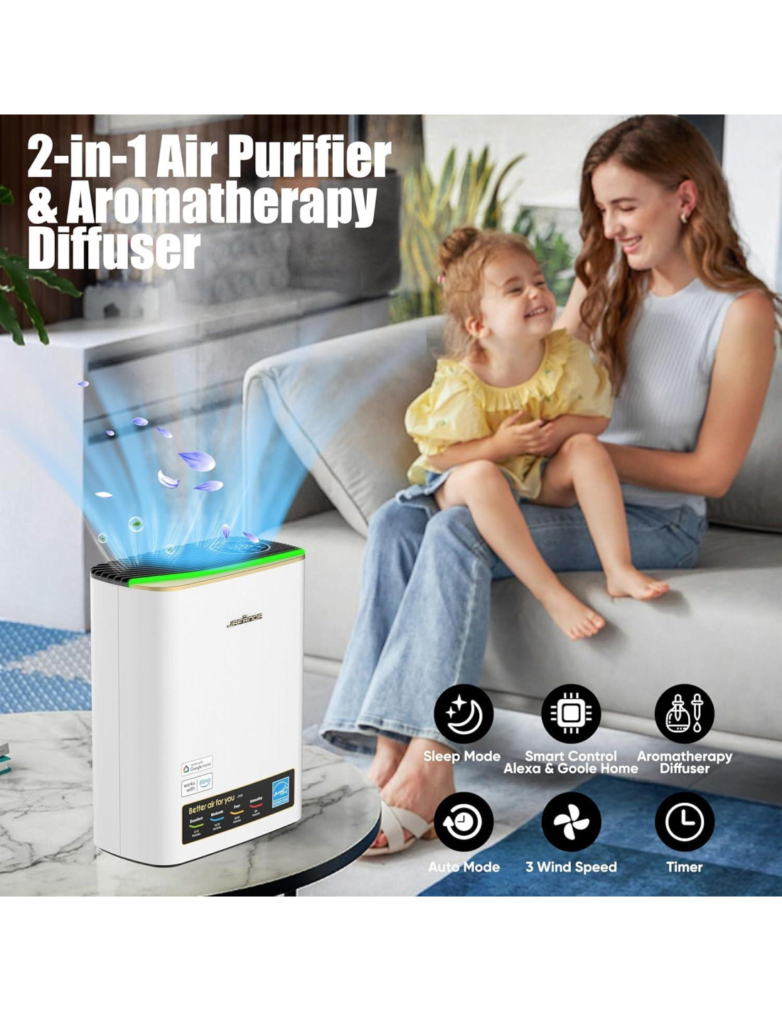 - Combinación de Aire Limpio y Aromaterapia: El Jafanda JF239 no solo purifica el aire en habitaciones grandes, también te permite personalizar la fragancia con tus aceites esenciales favoritos, combinando los beneficios del aire limpio y la aromaterapia.