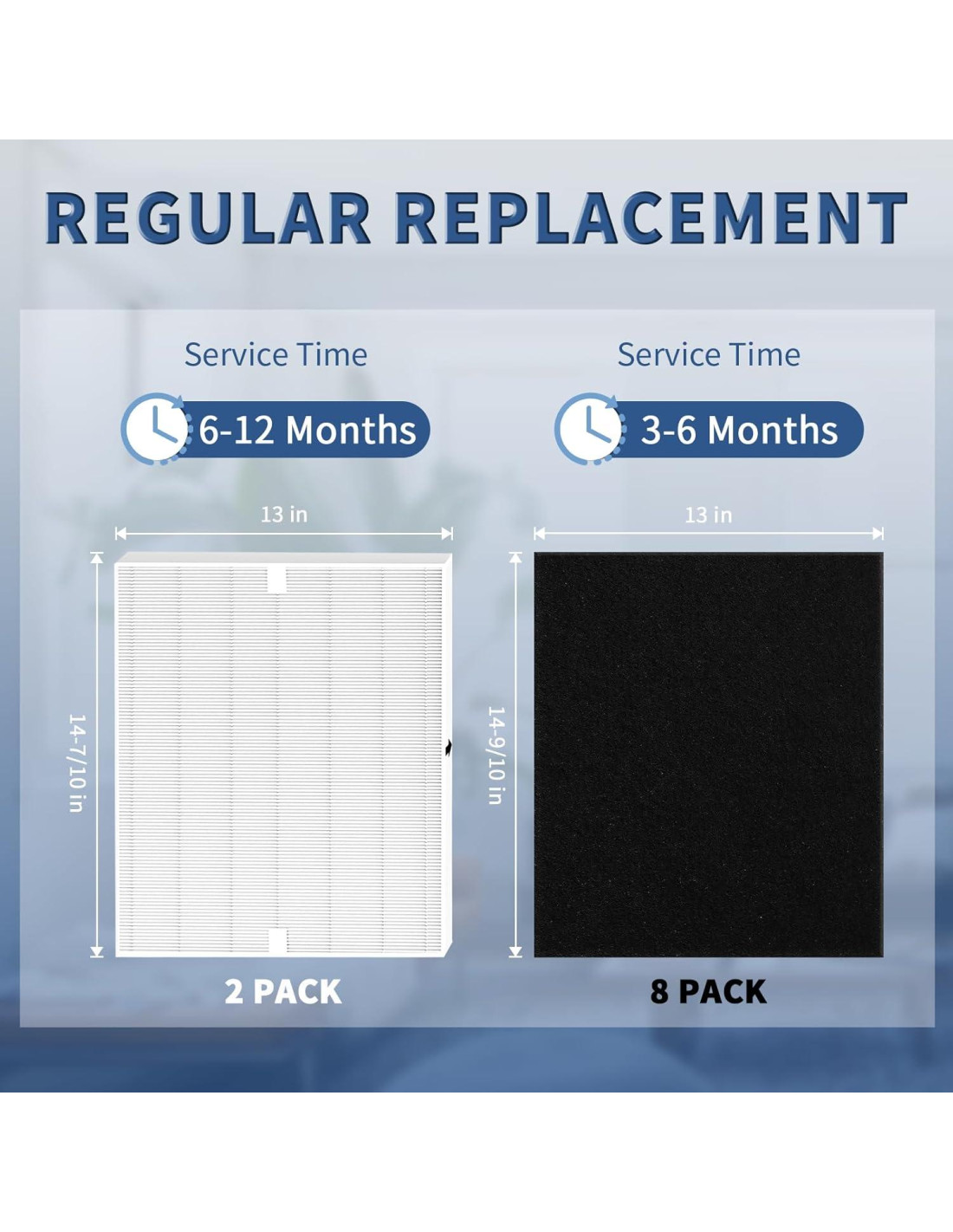 - El paquete incluye 2 x Filtro HEPA Verdadero AP-1512HH y 8 x Filtro de Carbón Activado Pre-Cortado. Dimensiones del Filtro HEPA: H: 14.7" (37.34 cm) x L: 13" (33.02 cm) x W 1.2" (3.05 cm), Dimensiones del Pre Filtro: H: 14.9" (37.85 cm) x L: 13" (33.02 cm) x W 0.2" (0.51 cm) (Por favor, consulta la imagen para más detalles). ¡Nunca pierdas tu tiempo midiendo y cortando prefiltros de nuevo! Nuestro paquete de valor de filtro de reemplazo ap-1512hh contiene todos los filtros requeridos para completar la instalación estándar de tu purificador de aire.