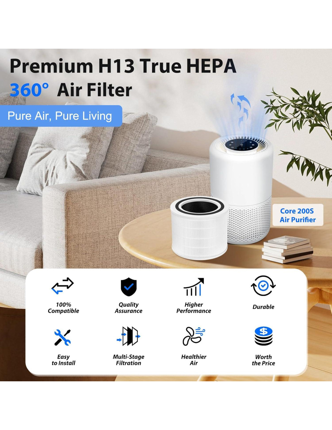 - [Para Reemplazo de Filtro Levoit 200S & Mejora tu Respiración] Compatible con el Filtro de Reemplazo de Purificador de Aire Levoit Core 200S. El filtro de reemplazo mejorado 3-en-1 core 200s ayuda a mejorar la calidad del aire interior y mejorar la calidad del sueño del usuario con el filtro core 200s para el reemplazo de filtro Levoit.