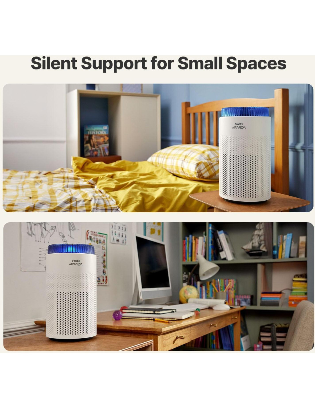 El Airmega 50 es el purificador de aire cilíndrico más pequeño y asequible de Coway. Su filtración de 3 etapas combate eficientemente alérgenos, virus, humo y olores para defenderse contra el 99.999% de las partículas tan pequeñas como 0.01 micrones. Compacto y discreto, se adapta perfectamente a cualquier espacio para ayudarte a respirar aire más limpio y saludable.