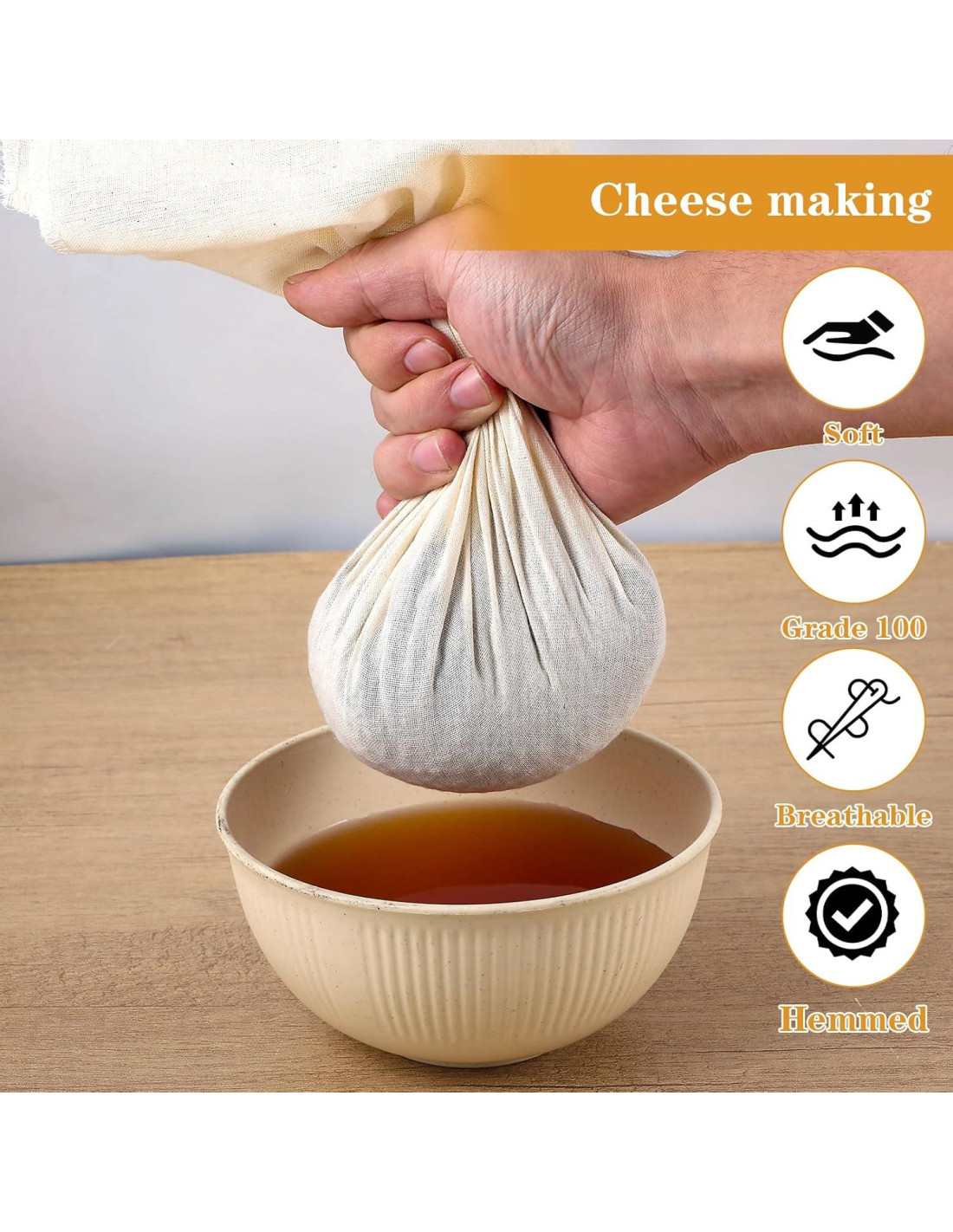 - Uso Versátil Usa estos paños de muselina para colar para hacer queso, filtrar jugo o crear leche de nuez casera. Estas bolsas de paño de queso para colar también son excelentes para conservas, cocina y más