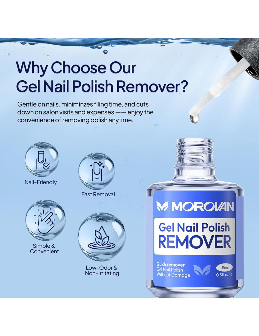 - REMOVEDOR DE ESMALTE DE UÑAS EN GEL PROFESIONAL: El removedor de esmalte de uñas en gel de grado de salón de Morovan ofrece un rendimiento potente y profesional.