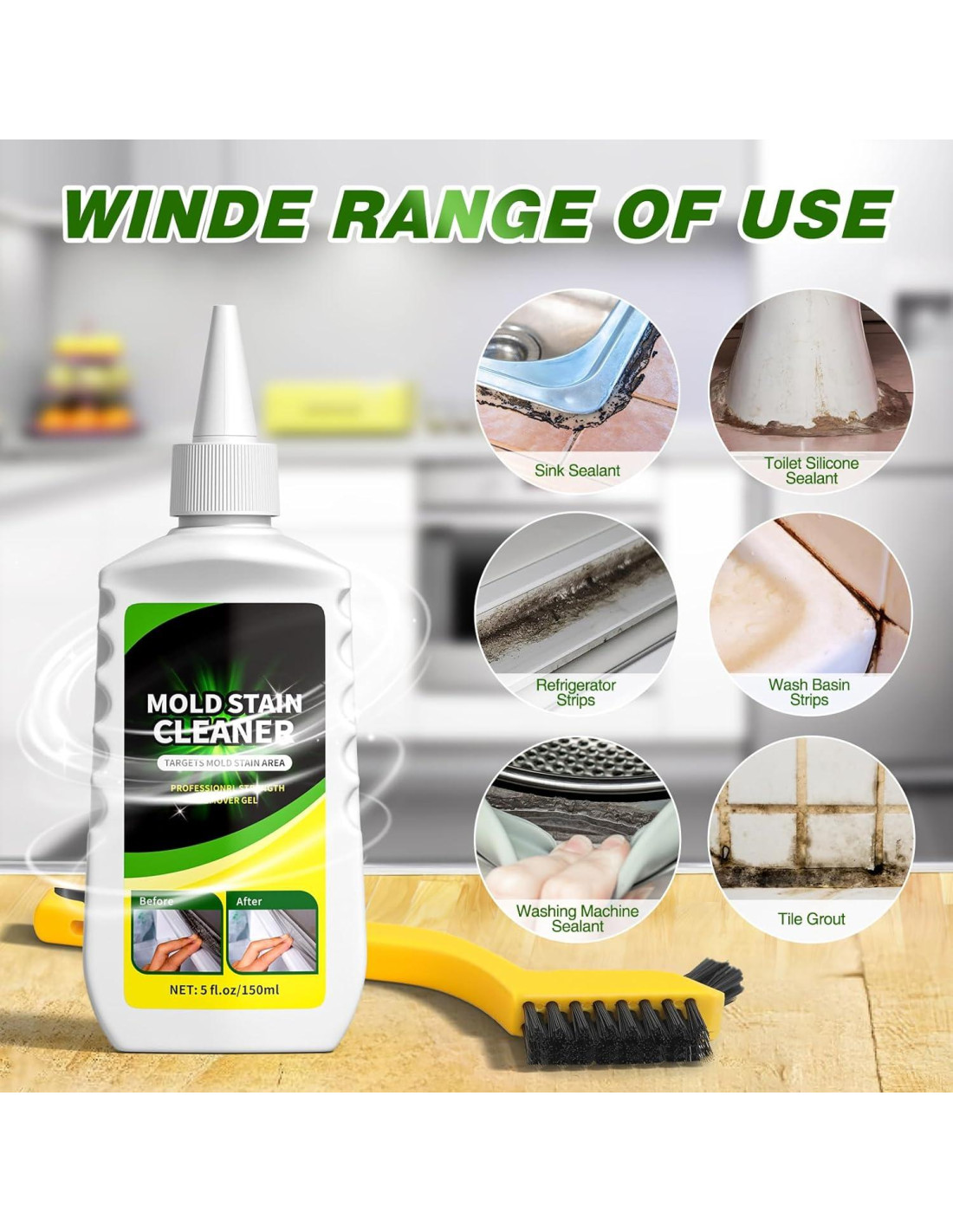 - [Uso Versátil] - Gel limpiador doméstico eficiente para limpiar juntas de goma, tambor de lavandería de carga frontal, limpiar el sello de la lavadora, tiras de refrigerador, limpiador de baño para manchas en paredes de ducha o limpiador de selladores. Deshágase de las manchas en azulejos, paredes, duchas, bañeras, gel limpiador de lechada.