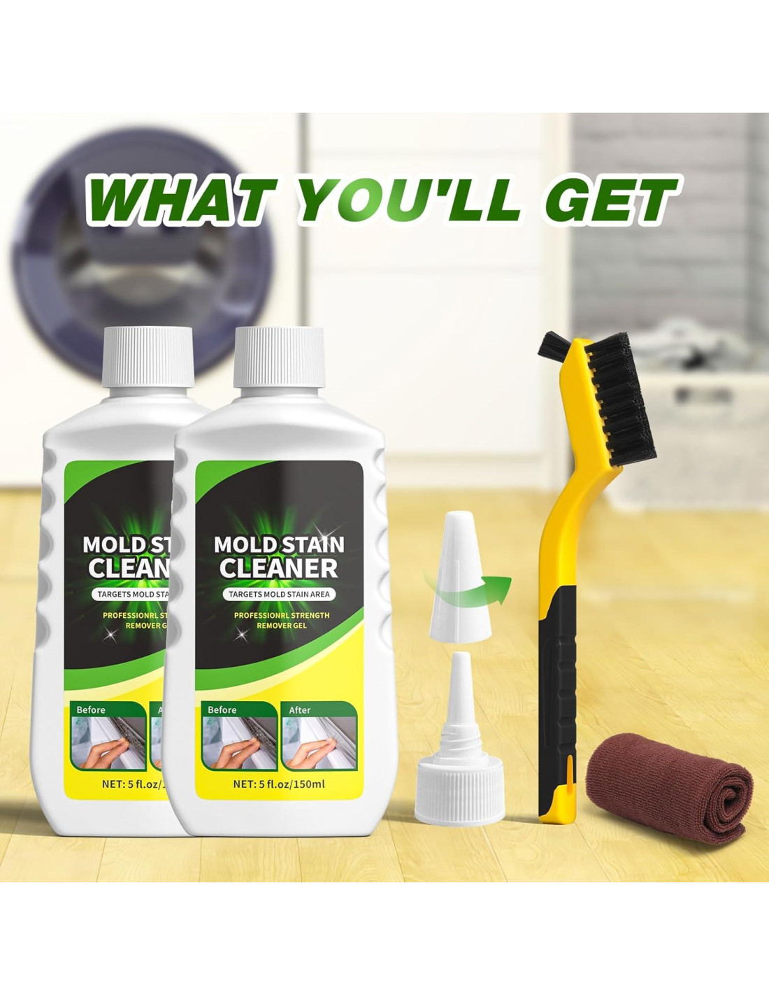- [Fácil de Usar] - Aplique el gel limpiador de juntas de lavadora de carga frontal uniformemente en los sellos, o verticalmente en la línea de la pared, espere de 3 a 8 horas, luego enjuague con agua o limpie con una toalla para limpiar las manchas negras de su hogar.