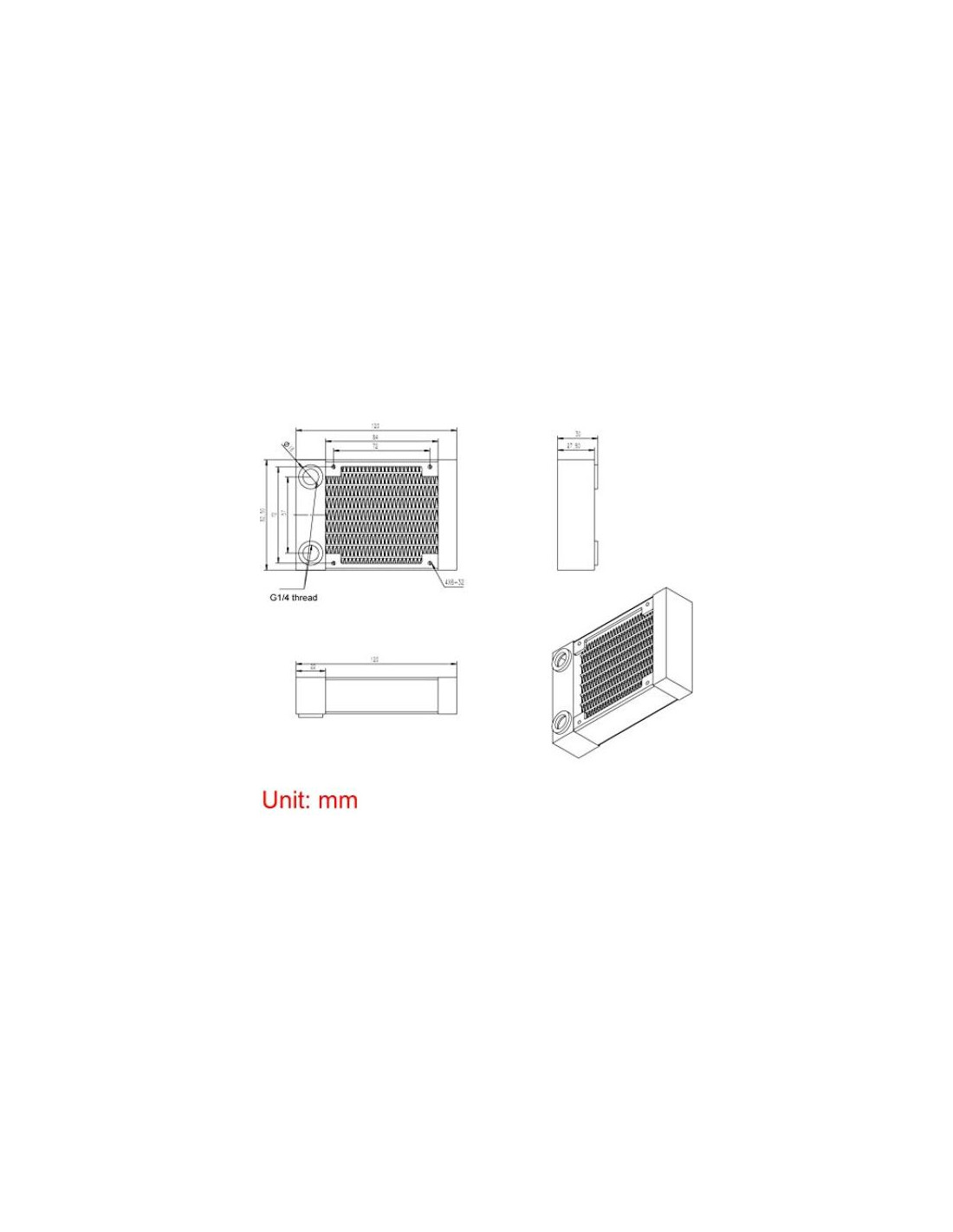 - Nombre del Producto: Radiador de Refrigeración por Agua; Tamaño: 105 x 80 x 27 mm (4.1'' x 3.1'' x 1.06'') (L*A*H).