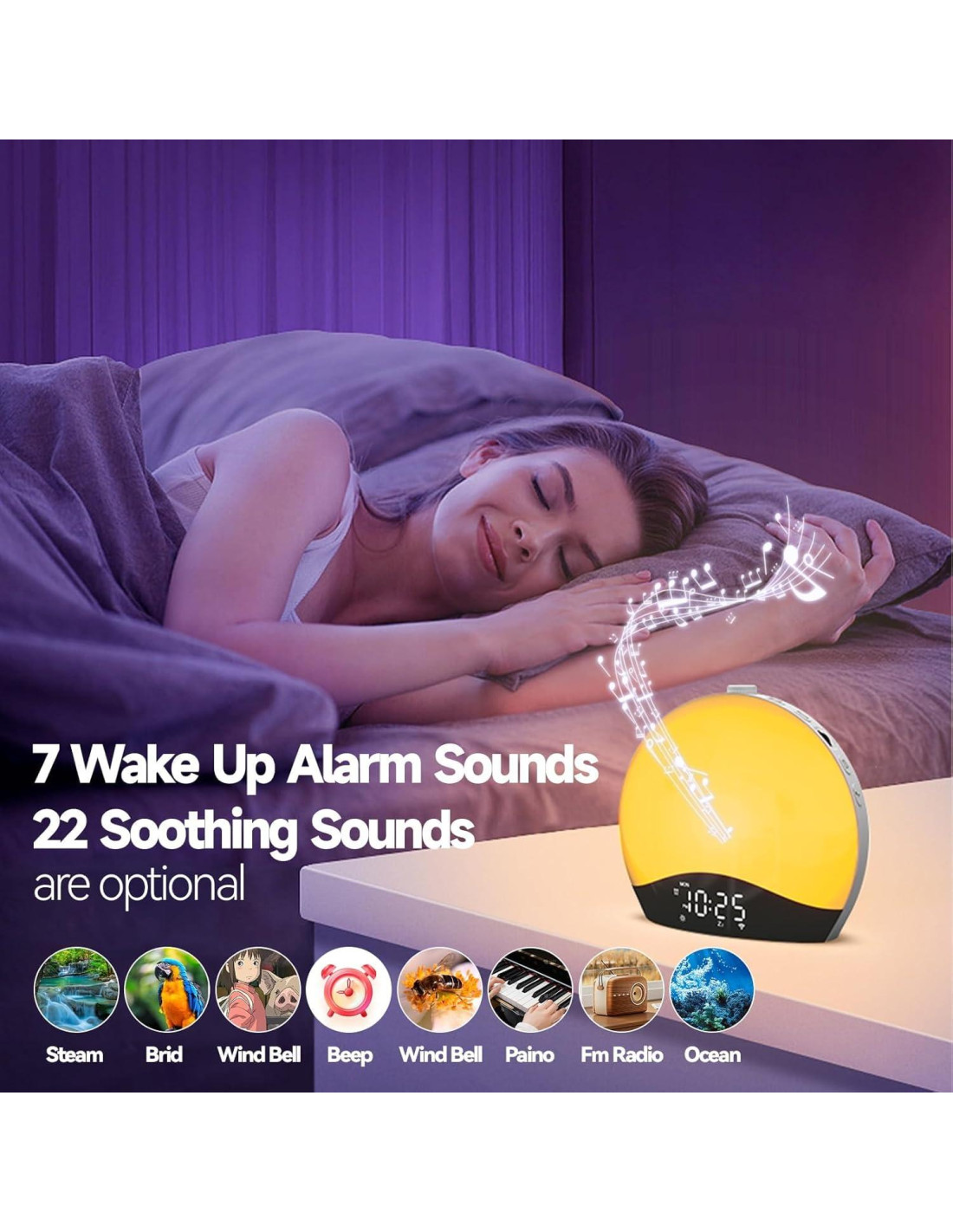 - [Luz de Despertar con simulación de amanecer] La luz es el mejor despertador para un reloj biológico, como si la luz de la mañana te despertara suavemente. La función de simulación de amanecer y atardecer se puede configurar de 10 a 60 minutos antes de que suene la alarma, la luz de brillo 0-20 comienza a encenderse lentamente. Ayuda a comenzar el día renovado y revitalizado.