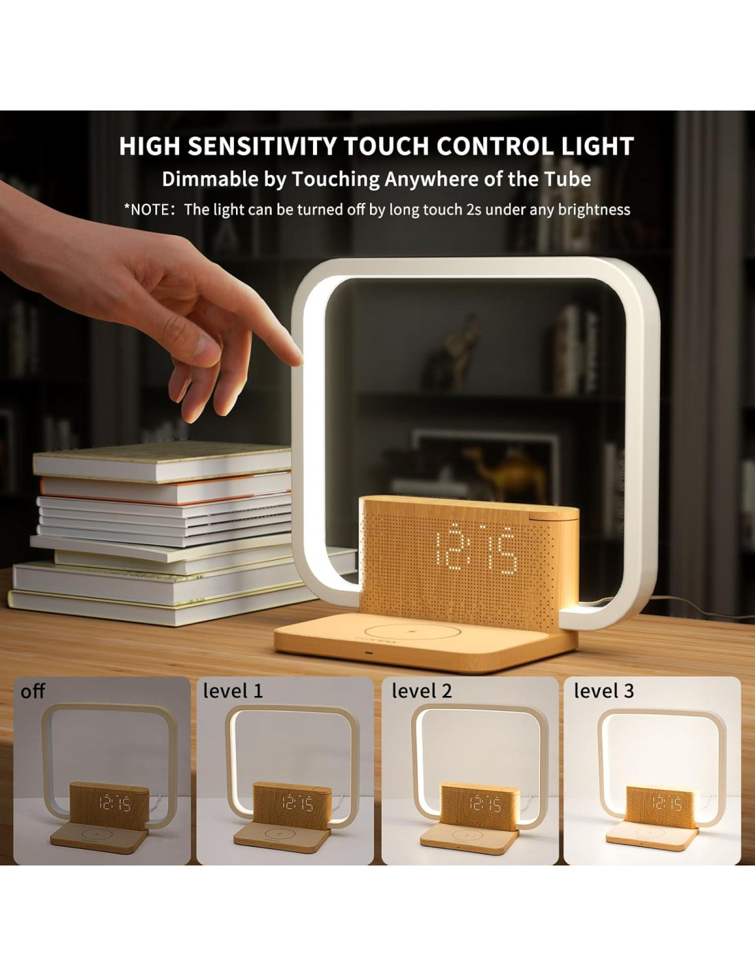 - Reloj digital con pantalla LED ajustable: Lámpara táctil blonbar con cuatro niveles de brillo, simplemente toque en cualquier parte de la lámpara para ajustar la iluminación desde sin brillo, a bajo, a medio, hasta el más brillante según sus necesidades básicas de iluminación. Una breve presión en el botón "snooze" puede ajustar la pantalla del reloj digital. Si el brillo mínimo aún le afecta, puede dejarlo sin mostrar el reloj.
