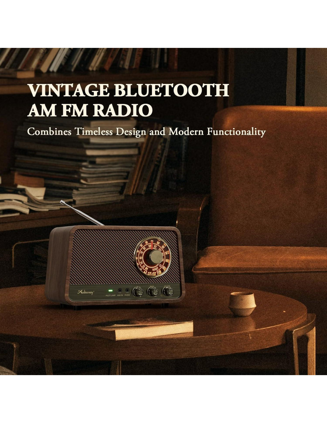 - Altavoz Bluetooth y reproducción AUX IN No solo es una radio retro, sino que también puede reproducir su propia música. Una tecnología Bluetooth 5.0 confiable le permite transmitir su música desde su teléfono al altavoz de la radio. Entrada auxiliar para fuentes de audio adicionales como reproductor MP3 o iPod/iPhone.