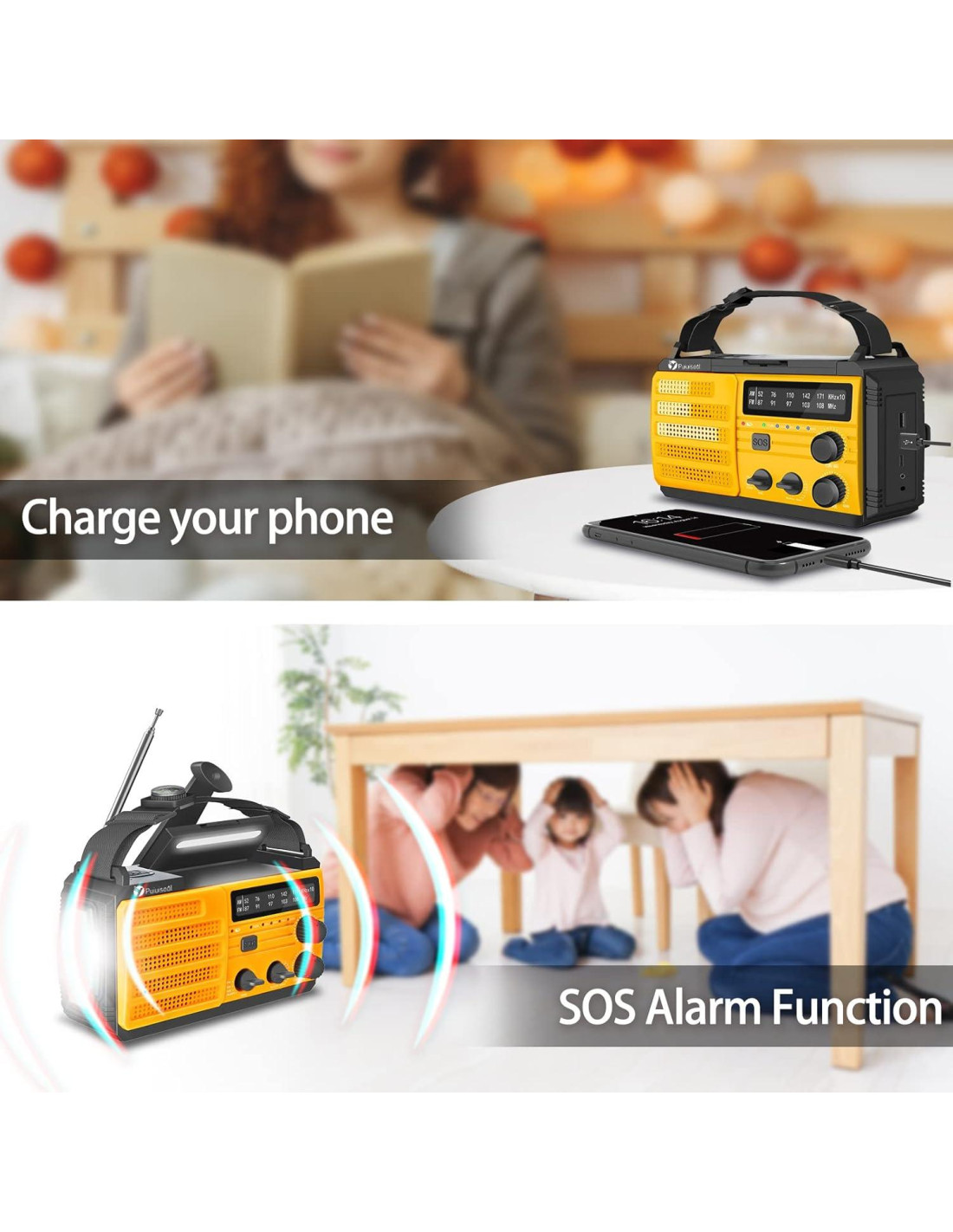 - [ESTÉ PREPARADO PARA CUALQUIER EMERGENCIA]- Con nuestra Radio de Emergencia mejorada, tendrá todo lo que necesita para mantenerse seguro e informado en cualquier situación. Esta radio meteorológica portátil está repleta de características como NOAA/FM/AM, una potente linterna de 3 modos, luz de lectura con sensor de movimiento, indicador de batería y una alarma SOS. Ya sea que esté acampando, haciendo senderismo, kayak o enfrentando condiciones climáticas severas, nuestra radio lo tiene cubierto.