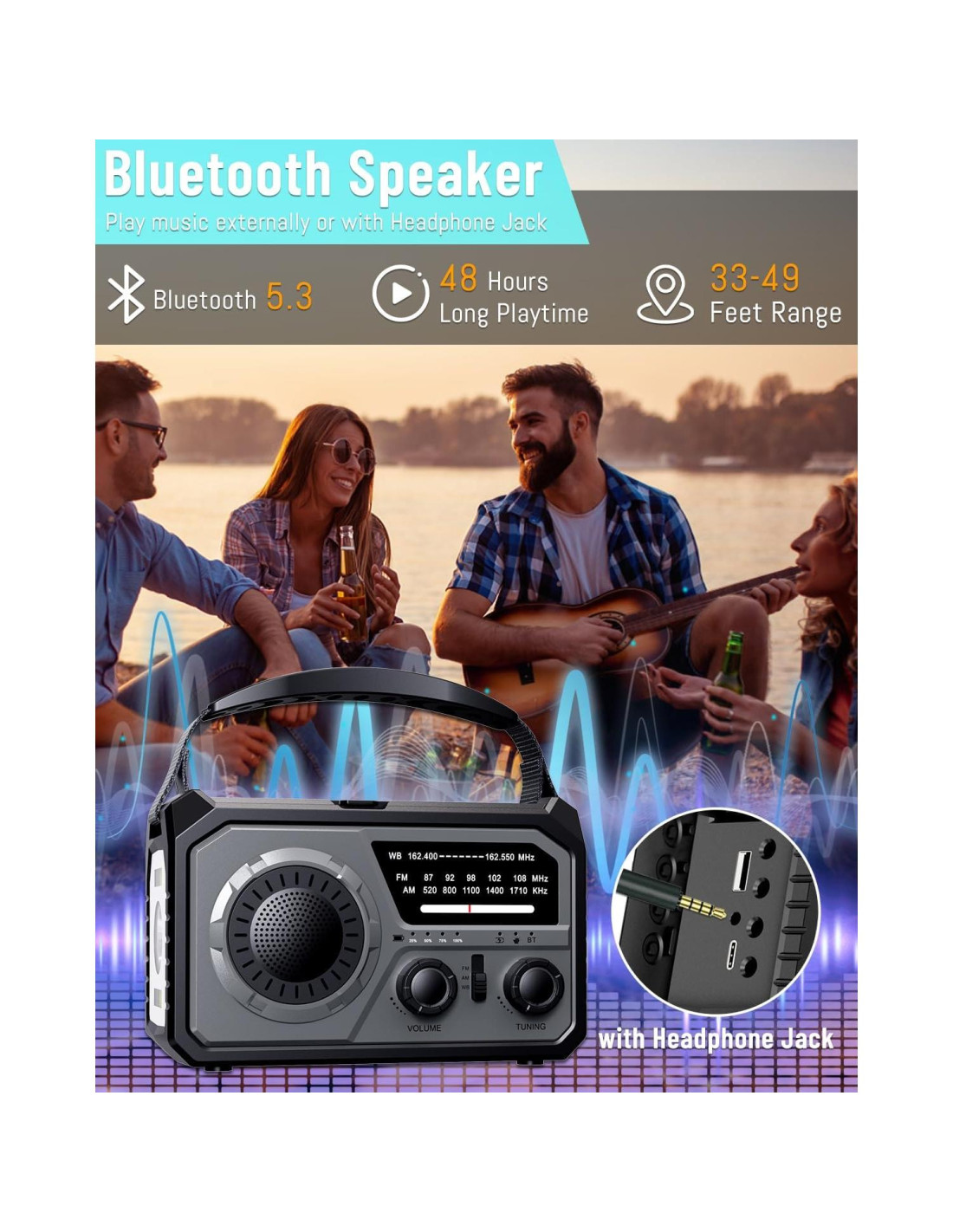 - Alertas Meteorológicas NOAA Avanzadas. A medida que los desastres aumentan, una radio de emergencia excepcional se convierte en una necesidad. Nuestra transmisión meteorológica NOAA mejorada captura señales NOAA/AM/FM (AM: 520-1710 KHz/FM: 87-108 MHz/WB: 162.4-162.55 MHz).