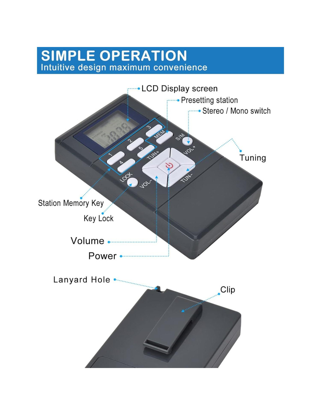 - [RADIO FM DIGITAL DE BOLSILLO] Se adopta un chip de tecnología de procesamiento digital DSP, la recepción de señal de modulación de frecuencia es estable. Con el conector de auriculares de 3.5mm (Auriculares incluidos), eres libre de tener un espacio privado para disfrutar de la radio sin molestar a otros.