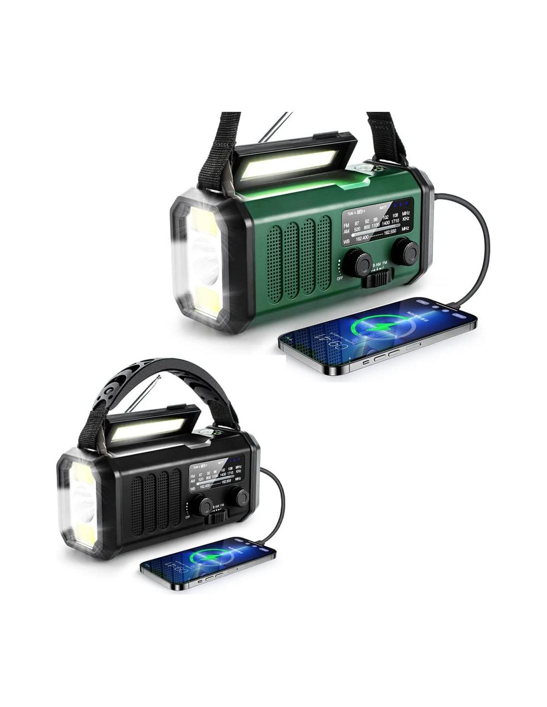 - Necesario para emergencias - batería recargable incorporada de 10000 mAh para cargar el teléfono móvil y la tableta en una emergencia, esta radio de manivela para el clima puede recibir de manera confiable los últimos pronósticos meteorológicos de emergencia de NOAA y estaciones de radio AM/FM, radio portátil de emergencia, una linterna super brillante con 3 modos, una lámpara de lectura, alarma SOS, una manivela y un panel solar para cargar la batería. La radio solar cumple con todos sus requisitos, muy conveniente para emergencias.