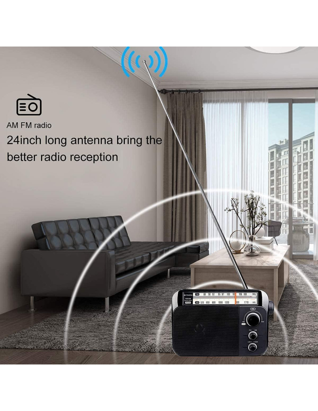 TR635: En comparación con radios ordinarias que solo pueden depender de antenas integradas para recibir señales, esta radio AM FM añade una interfaz de antena externa de 3.5mm. Puedes usar una antena externa para mejorar la señal AM, permitiéndote escuchar estaciones de radio más claras; el chip DSP integrado muestra la frecuencia en números, por lo que tanto los ancianos como los niños pueden ver claramente el dial y ajustar la frecuencia fácilmente; la función ATS puede buscar automáticamente todas las estaciones de radio cercanas, facilitando tu operación; además, añade función de hora, puedes ajustar el modo de 12/24 horas; alimentado por cable de alimentación de CA (incluido), también puedes usar energía de batería de 3D cuando estés al aire libre; el modo de graves altos y bajos puede brindarte una experiencia musical única, ya sea en notas altas en una fiesta o notas bajas cuando estás solo, la calidad de sonido clara satisface tus necesidades; Radio portátil Retekess TR604 con gran pantalla de dial de frecuencia, perilla de ajuste de volumen y perilla de sintonización roscada. La radio de transistores con antena magnética interna, puedes obtener la recepción óptima al girar la dirección de la radio al recibir AM. Radio TR604 pequeña con un mango portátil, hace de esta la radio perfecta para disfrutar en casa, en el parque, playa, picnics, gimnasio o sala de juegos.