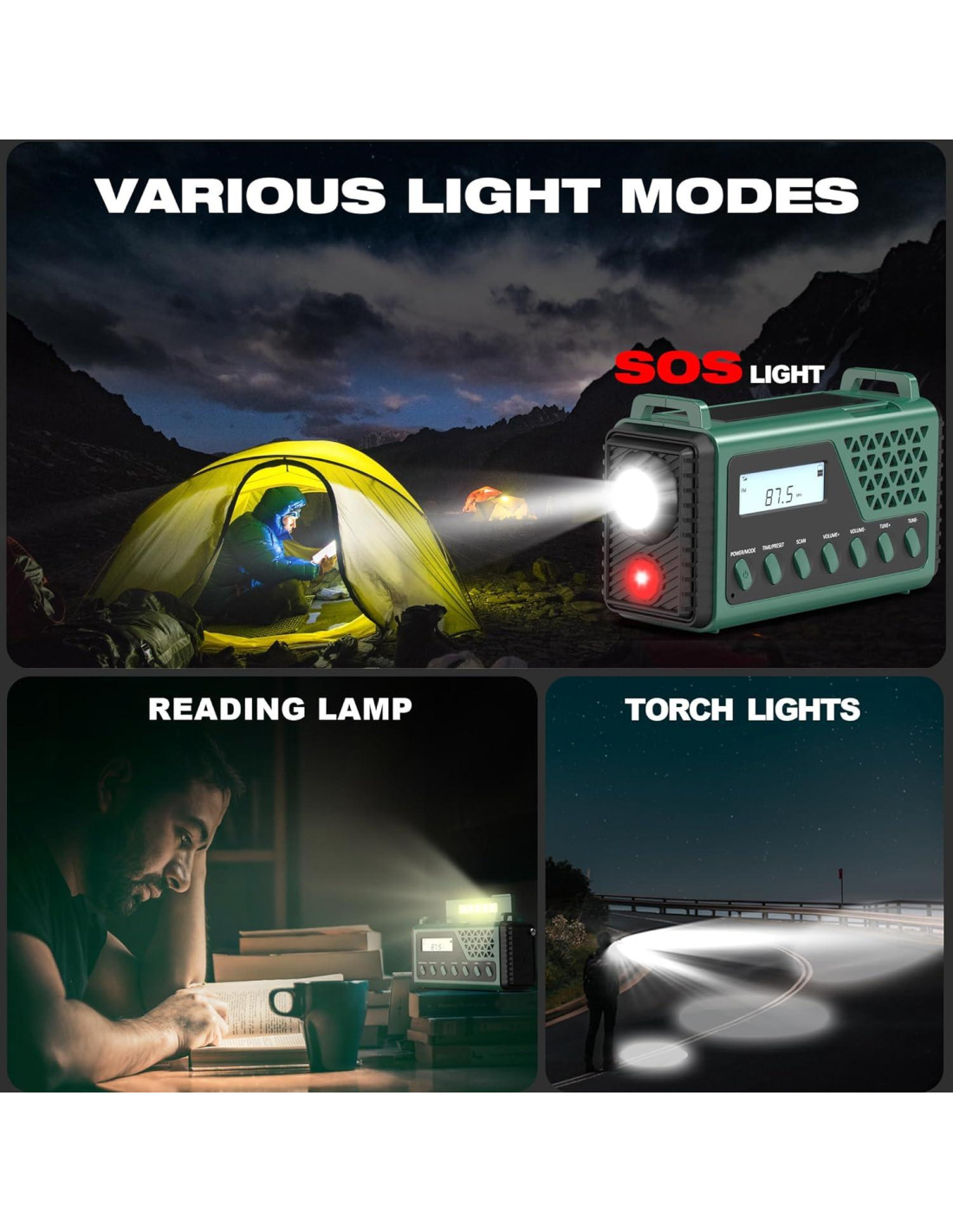- DURADERA Y PORTÁTIL Diseñada para uso al aire libre, esta radio meteorológica resistente está construida para soportar condiciones adversas. Su diseño compacto y liviano la hace fácil de llevar y almacenar, lo que la convierte en una excelente opción para camping, senderismo, pesca, ciclismo nocturno y otras actividades al aire libre.