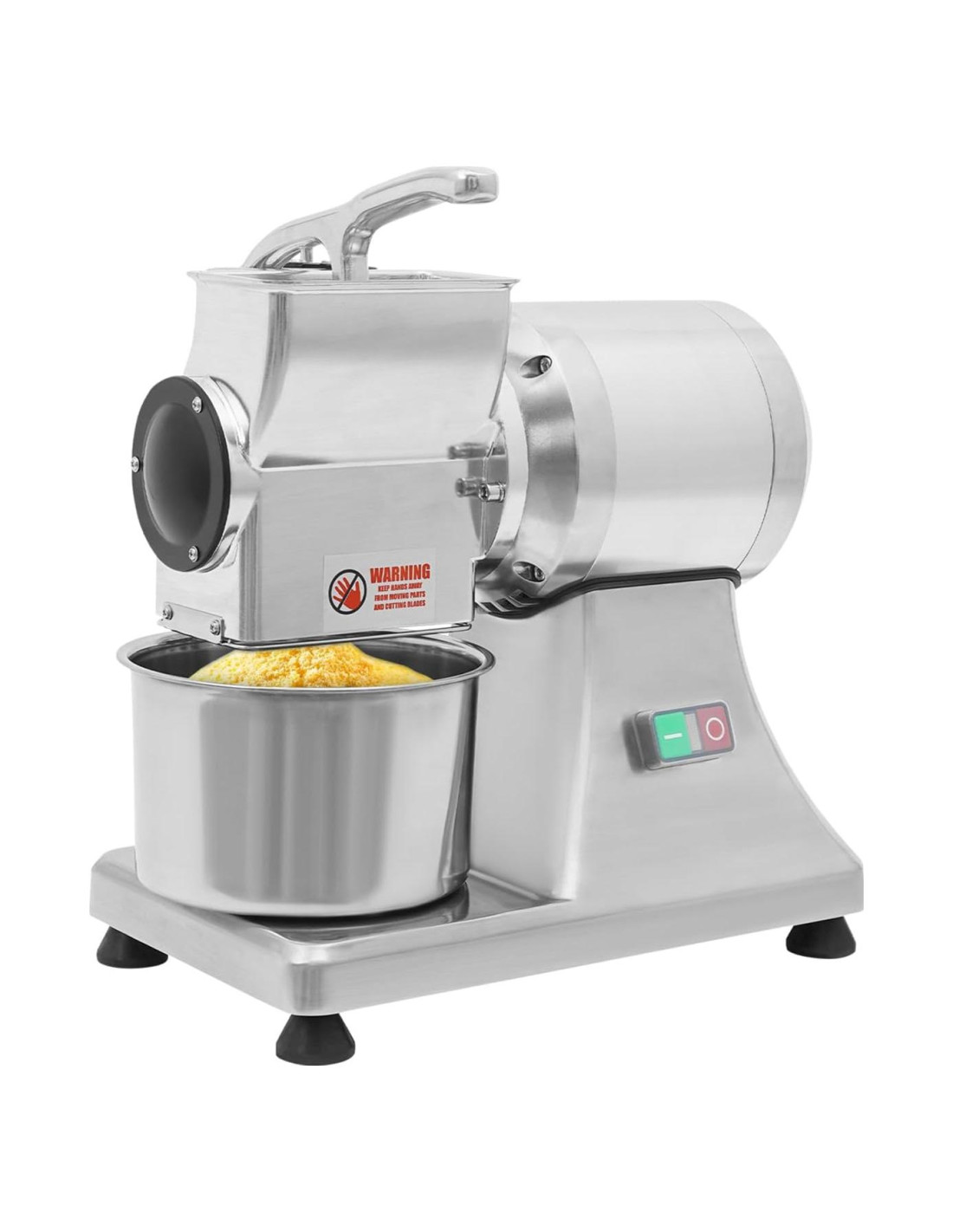 - [Diseño Considerado] Los pies altos son antideslizantes e impermeables, proporcionando una gran estabilidad para este rallador de queso eléctrico comercial. La estructura simple, el eje de rodaje desmontable y la superficie lisa te permiten limpiarlo con un paño suave y agua después de usarlo.