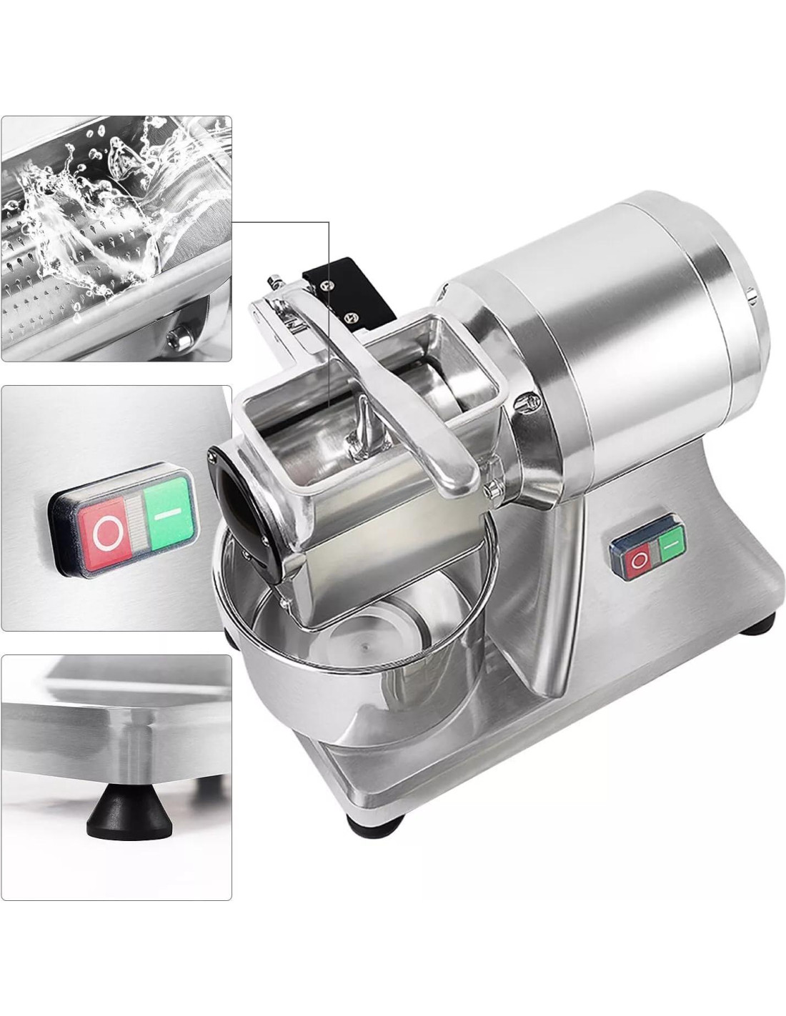 La máquina adopta un motor de cobre puro, con 550W de mayor potencia y mejor efecto de trituración. El triturador de queso puede triturar 40 kg de queso por hora. ¡Muy efectivo y fácil de usar! Coloca tu queso y enciende la máquina, triturará el queso automáticamente. Adecuado para restaurantes, bares, comedores, cafeterías, tiendas de postres, etc. Muy adecuado para rallar queso, rábano picante y otras verduras duras. Antes de usar, por favor descongela el queso y la mantequilla a temperatura ambiente.