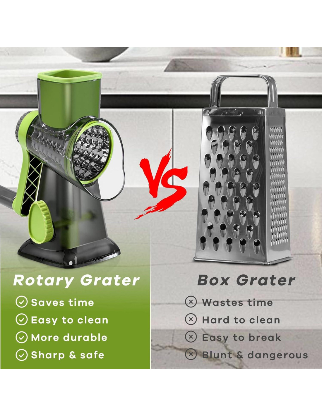 - Ahorra Tiempo y Espacio en la Cocina: Ralla este queso rotatorio alrededor de 12 veces más rápido que las velocidades de corte regulares para preparar grandes cantidades de ingredientes en poco tiempo. Este rallador de queso combina varias herramientas de cocina en una y ocupa poco espacio en la cocina.