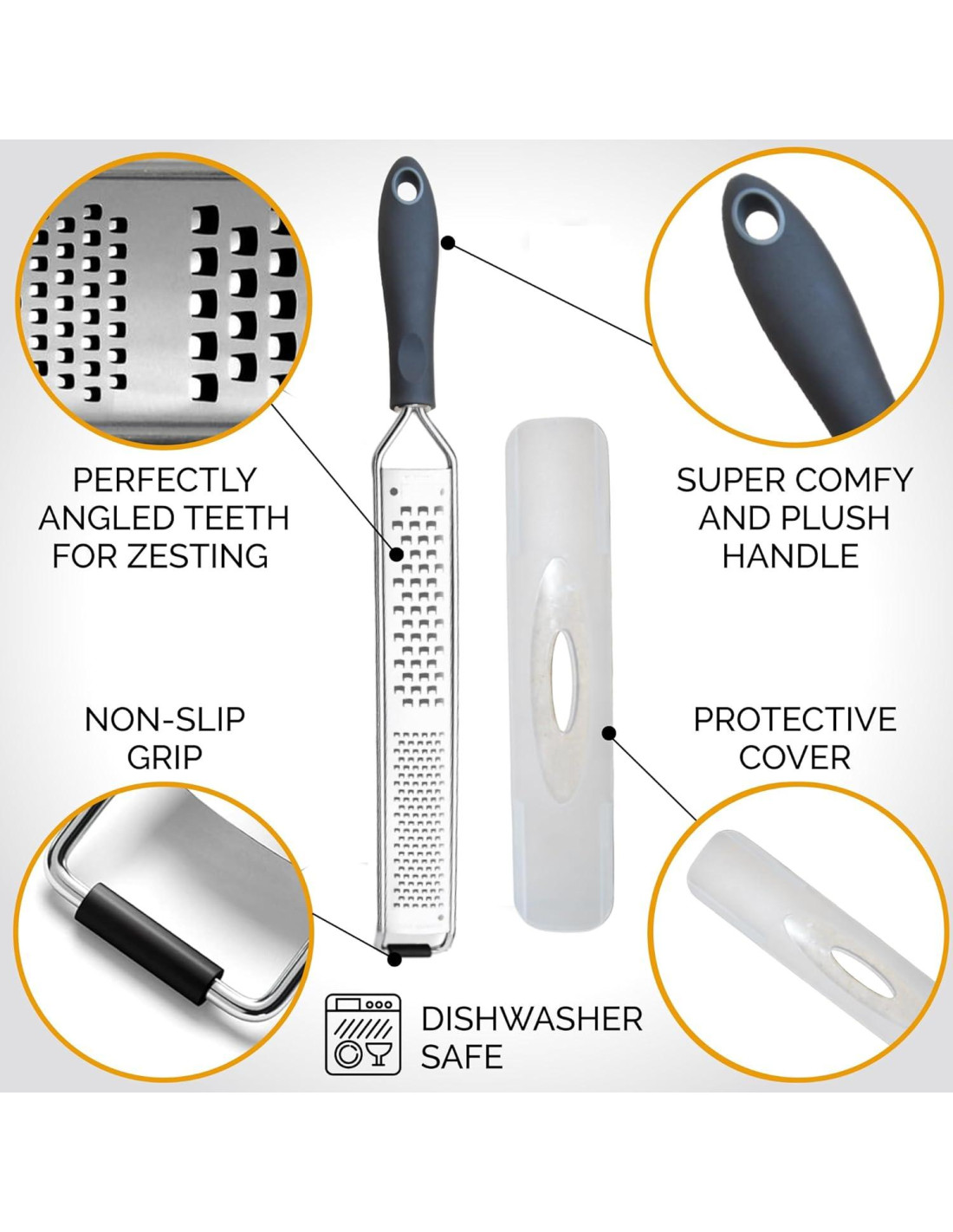 - HACE LO QUE QUIERES - Nuestro rallador zester es lo suficientemente delicado como para rallar perfectamente tus limones, pero lo suficientemente fuerte como para atravesar un bloque de queso parmesano envejecido. Confía en nosotros, pasamos dos años fijándonos en el ángulo de los micro dientes.