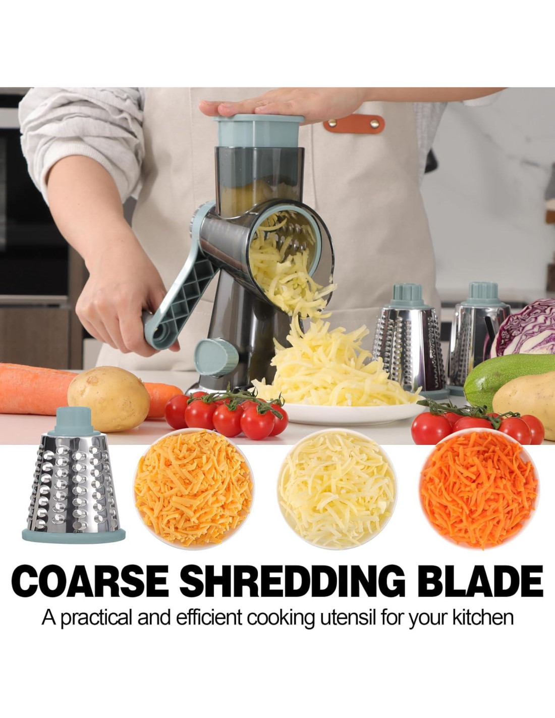 - Rallador de Queso Rotatorio Multifuncional: El rallador de verduras GORCI hace que la preparación de alimentos sea más rápida y fácil; es perfecto para rallar queso, rábano, zanahoria, pepino, zanahoria, papa, calabacín, chocolate o nueces para ensaladas, coberturas de pizza, etc.