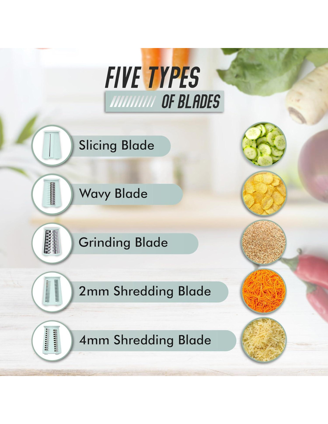 - Cuchillas de acero inoxidable duraderas - Con cuchillas robustas y resistentes a la corrosión que manejan sin esfuerzo desde quesos suaves hasta verduras duras, asegurando un rendimiento confiable cada vez.