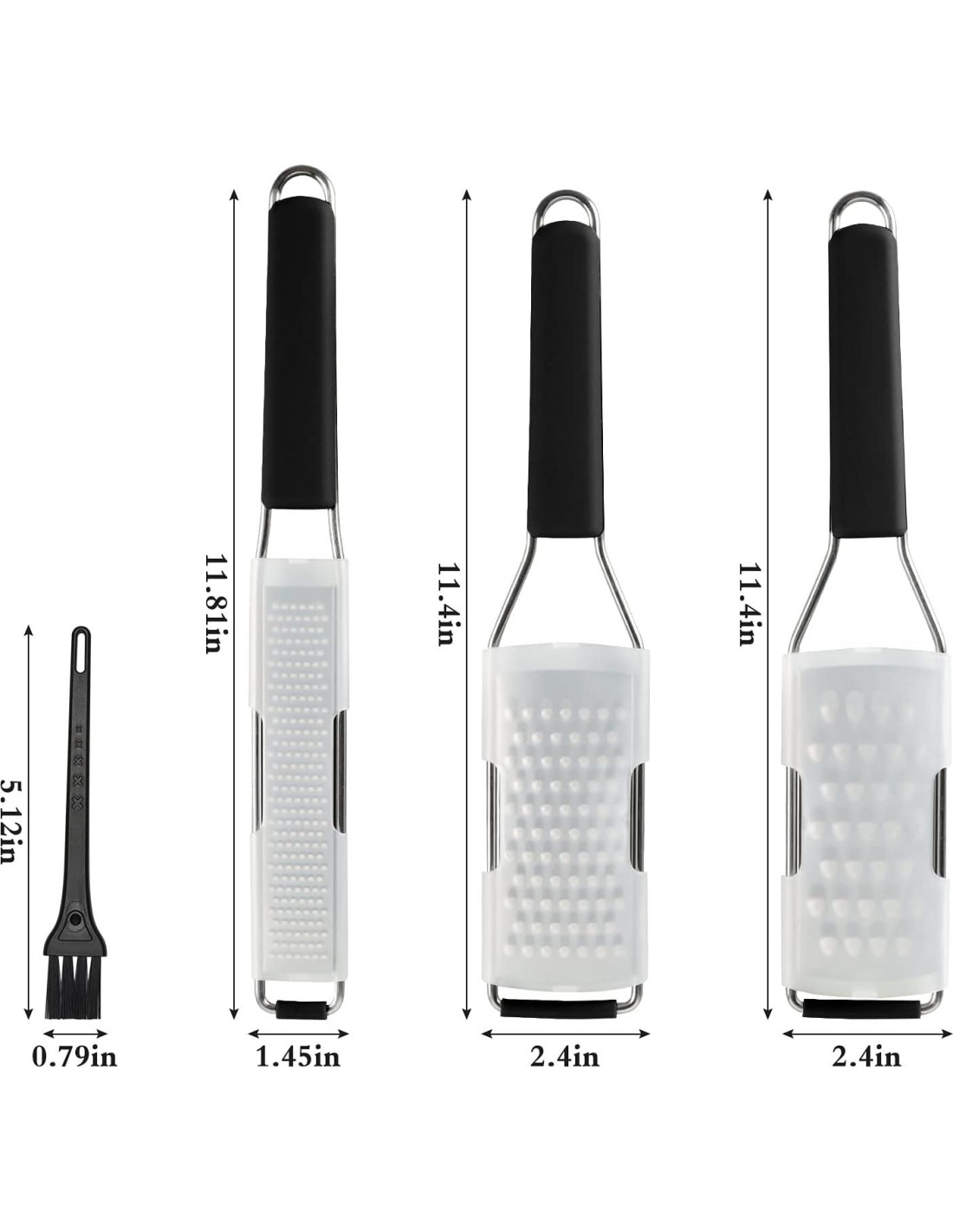 - Juego de Ralladores de Queso: Rallador con agujeros finos, gruesos y extra gruesos y un cepillo de limpieza. Cada uno viene con una funda protectora. Portafolio de super rendimiento de costo