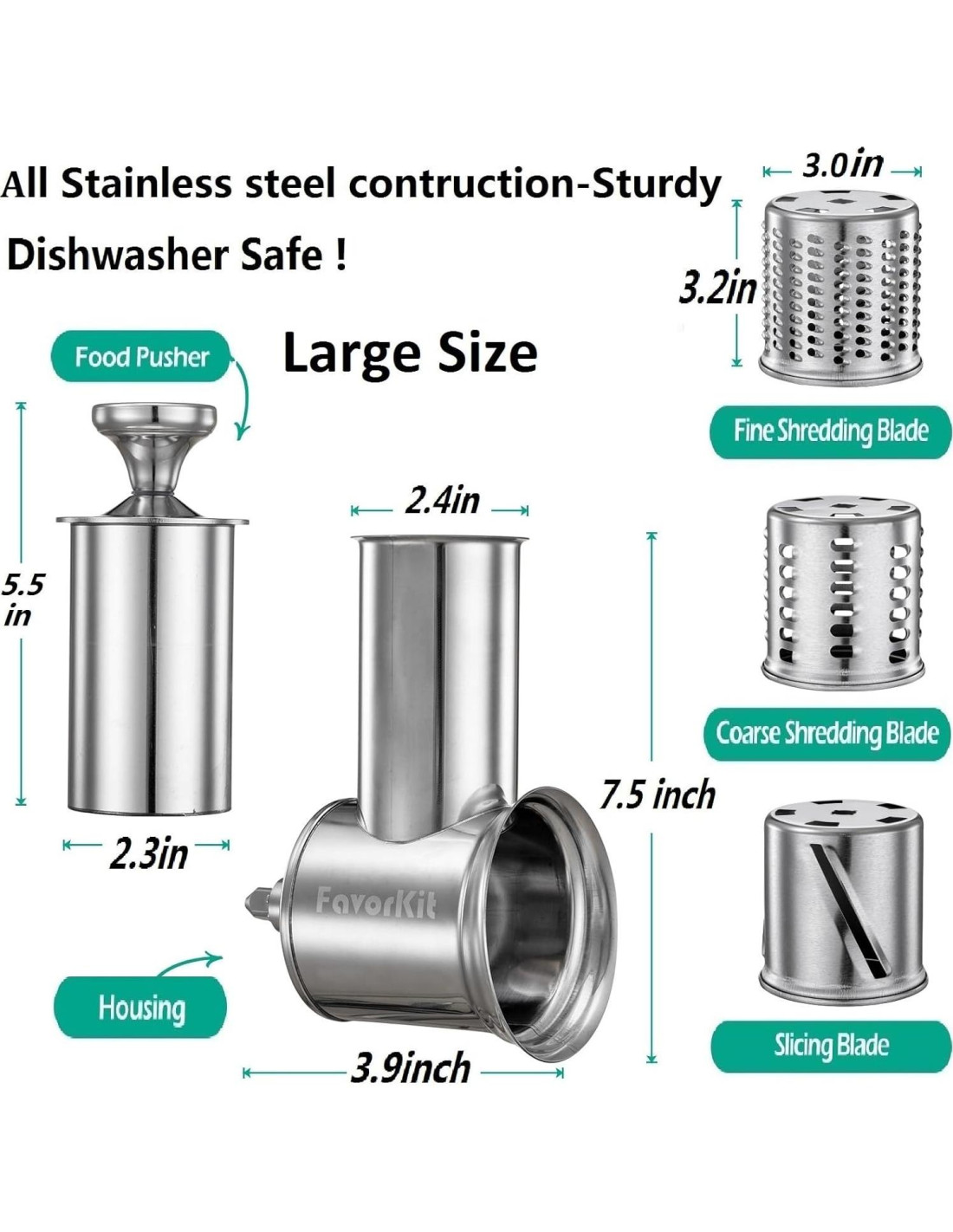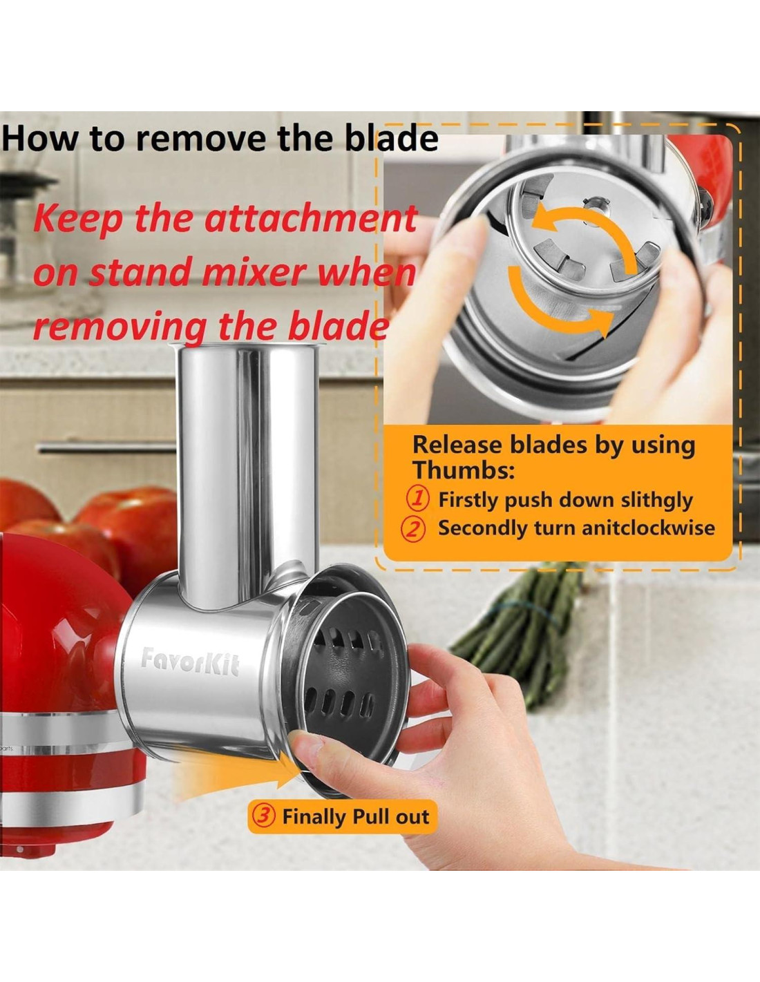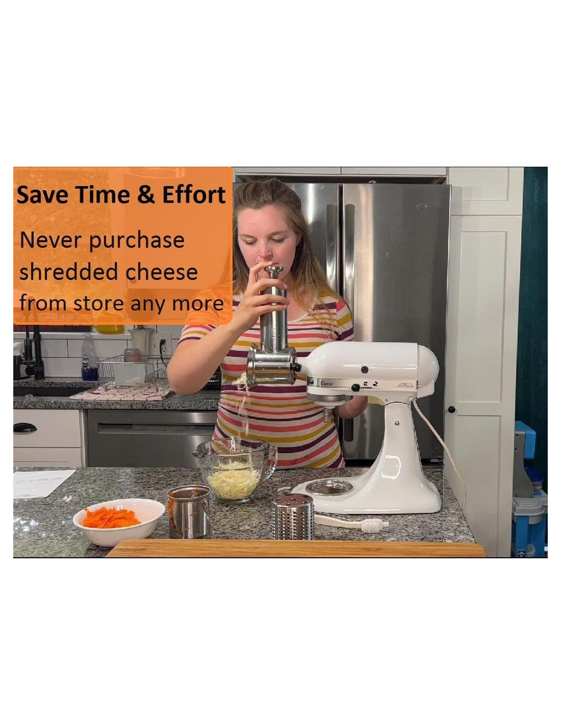 - Diseño del Accesorio de Rallador y Cortador para batidoras KitchenAid, simplemente se conecta al hub de potencia frontal, ideal para tareas culinarias de preparación fresca. Se ajusta bien, sin tambalearse, sin sacudidas. (Nota: este accesorio no es creado por KitchenAid, y el pedido no incluye la máquina mezcladora).