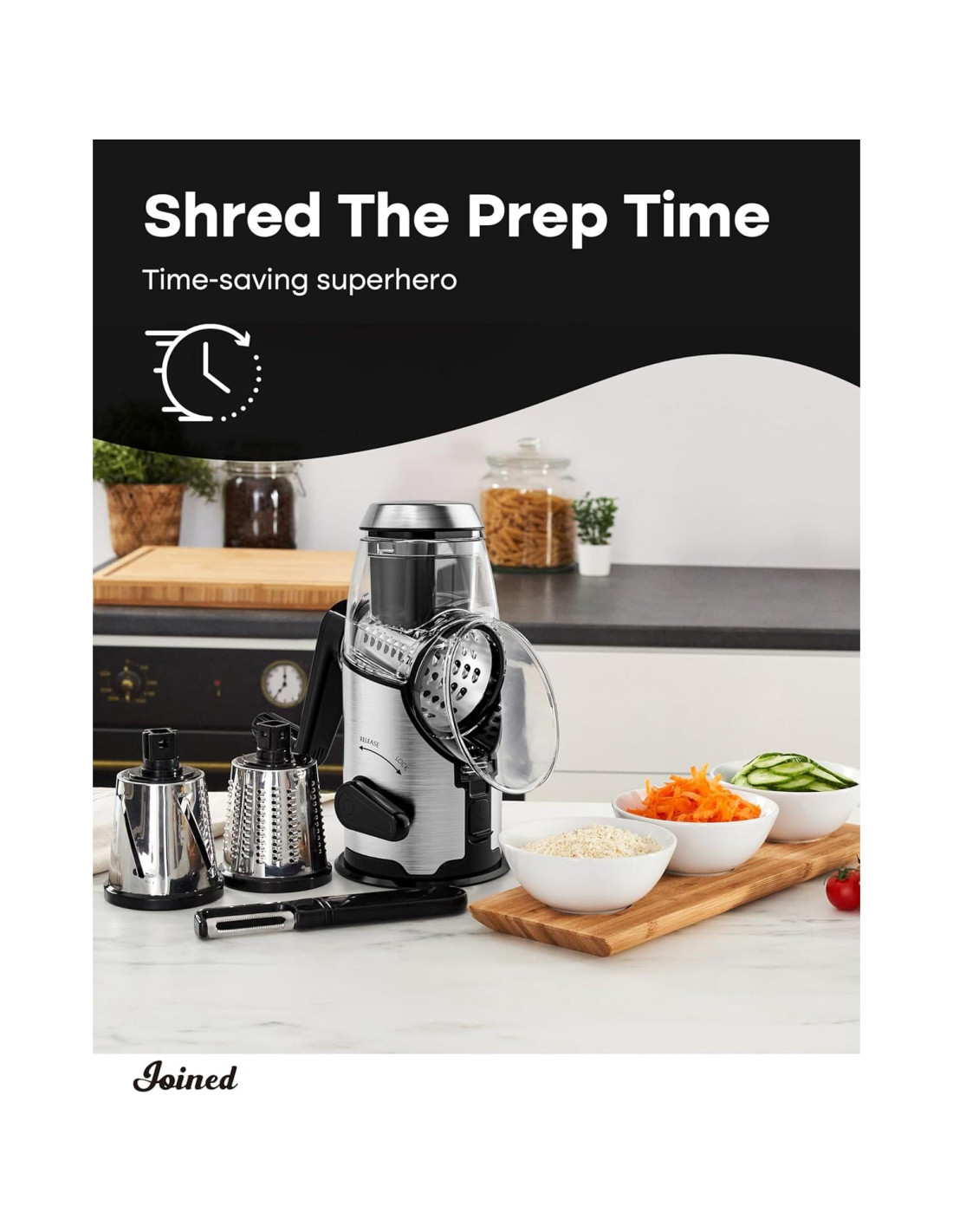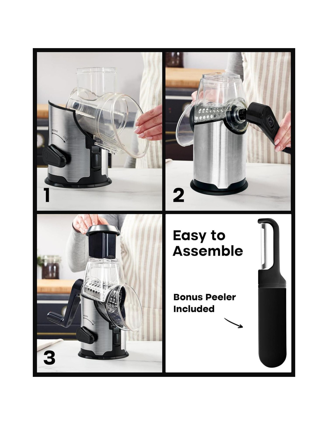 - Ralla con Confianza - Nuestro rallador manual rotativo incluye una base de succión para asegurar un rallado estable en la encimera para resultados fáciles y profesionales sin complicaciones
