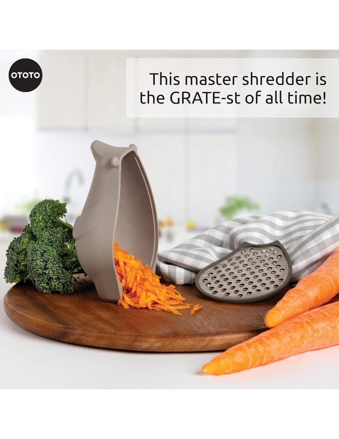 - Práctico y Útil - Conoce a Barry, el gran rallador y cortador de alimentos. Un rallador de cocina muy lindo y talentoso hecho por el galardonado estudio OTOTO. Creemos que él es el "mejor" entre los ralladores de cocina. No solo es un rallador de queso, también es un rallador de verduras. Ralla parmesano, zanahorias, nueces y chocolates con facilidad mientras mantienes tus manos protegidas. ¡No más esquivar bordes afilados y puntiagudos mientras preparas comida deliciosa en casa para la familia!