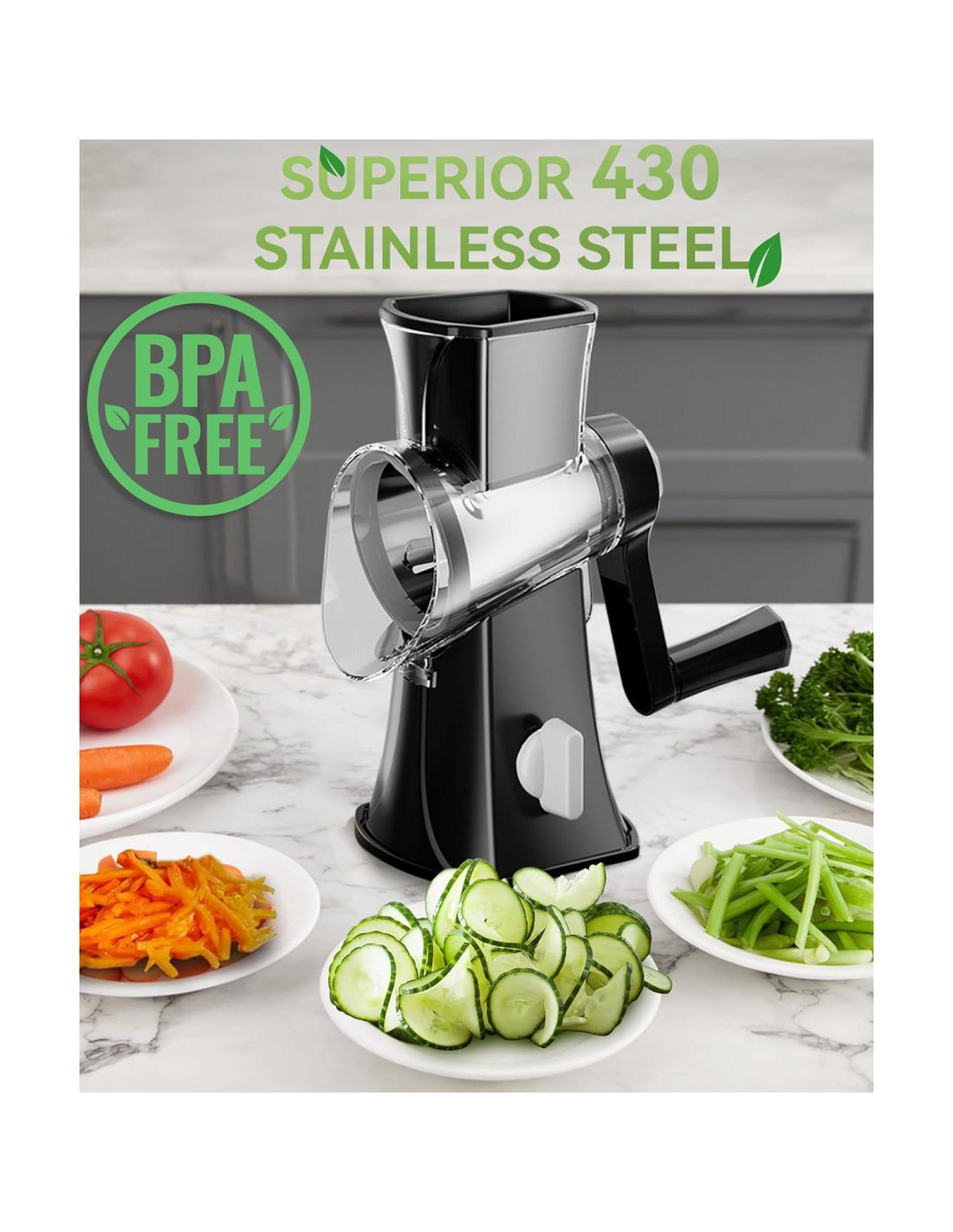 - Cuchillas de Acero Inoxidable 430 Duraderas: Fabricadas con acero inoxidable 430 de alta calidad, las cuchillas de nuestro rallador de queso son superiores. Su afilado permite un rallado, corte y desmenuzado rápidos y precisos. Además, son altamente resistentes a la oxidación y corrosión, lo que significa que mantendrán su rendimiento a lo largo del tiempo, proporcionando un valor a largo plazo para tu cocina.